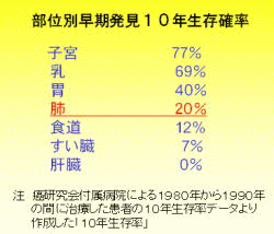 いずれにせよ、発ガン性が明確となっている喫煙、しかも早期発見でも、その後10年間生きられる確率が約20%しかない、すなわちひとたび肺ガンになると治る可能性が低いのだ。