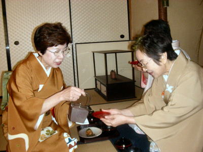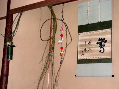 2011年1月9日(日)、池田邸で初釜が開催された。私は病み上がりなので、今年は参加しなかったが、池田さんから初釜の写真が送られてきたので速報します。 写真の撮影は、荒井紀子さんが行いました。 ![]() 初座飾り ![]() 池田さん初炭手前 ![]() 遠藤さんに池田さんがお酌 ![]() つるし飾り床の間 ![]() 池田宗蹊濃茶点前 池田さんから以下のコメントをいただきました! 初釜を終えて 今年も一月の第二日曜日、恒例の初釜を無事に終えることができました。私は9歳から茶道に親しんでいますので、初釜もかれこれ50回目くらいとなります。 私どもの初釜の料理は、表千家先々代、惺斎宗匠の時代にお家元の初釜に出されていた献立で、私の師匠のところで長年守られてきたものですが、池田流はそれを少し母がアレンジしたオリジナルも含まれています。 今年も社中そろって初釜ができましたことは大変有り難いことと思います。また、一年間、忙しい仕事、ストレスの多い日々の日常を癒す場、日本の伝統芸術、文化に触れる場としてお稽古を続けていきたいと思っています。生活の中に静と動があることはとてもすばらしいことと思います。 初釜は茶道の稽古始めにあたり、社中一同が師匠のもとに集まり、楽しく 過ごすとともに、一年の稽古に励むことをみんなで確認し合うという意味も あります。師匠が社中のために渾身の濃茶をもてなします。 今年は紹鴎棚、水指は黄交趾の捻梅を用いました。床の間の飾りは毎年同じですが、今年は卯年なので可愛らしいうさぎちゃんのついた吊し飾りもつけました。 初炭、懐石、濃茶がおわったところで福引きを行い、一等の寿を引き当てた社中がみんなに薄茶を点てて振る舞うのが池田社中のきまりとなっています。 池田こみち ![]() 庭の立ち蹲(つくばい) |