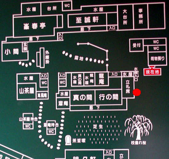 文化の日の2012年11月3日、今年も高田馬場にある茶道会館で表千家の茶会が開かれ、妻と一緒に参加しました。 お昼少し前まで曇天でしたが、お昼近くには青空ものぞきすばらしい茶道会館での茶会となりました。 ![]() 茶道会館の入り口にて 撮影:青山淑子 Nikoc Coolpix S8 2012-11-03 茶道会館の表千家、無極会茶会には、毎年参加されていただいていますが、今回、はじめて妻の淑子も参加しました。 今年は10日ほど前に自宅の階段で左足の指を捻挫したこともありましたが、JR高田馬場駅からゆっくり歩いて茶道会館に行きました。バス停で2つ、ゆっくり歩いて15分の距離です。 ![]() ![]() 撮影:青山貞一 Nikoc Coolpix S8 2012-11-03 ![]() 撮影:青山貞一 Nikoc Coolpix S8 2012-11-03 青山貞一は、毎年、無極会の茶会に参加しておりますが、それぞれの席主が担当する茶席は毎年変わります。今回、池田宗蹊さん(池田こみち)さんの社中は、受付のすぐ隣の「立礼席」でした。 茶道、茶会といえば、素人の私には、背筋を伸ばし正座するのが当たり前となっており、しびれをきらしてひっくり返らないかと、緊張します。 しかし、今回の「立礼席」は、椅子とテーブルが用意されていて、大変楽でした(笑い)。これは初参加の妻も同じです。 ![]() 席主 池田宗蹊さんの「立礼席」の位置 以下は、一昨年の山の茶屋です。 ![]() 席主 池田宗蹊さんの「山の茶屋」の位置(2010年) 茶道会館内には、上の地図にあるように10弱の茶室が都心とは思えないみどり豊かな茶道会館の中に点在しています。 ![]() 撮影:青山貞一 Nikoc Coolpix S8 2012-11-03 草花や植物大好きの妻は、じっと樹木に見入っていました! ![]() 撮影:青山貞一 Nikoc Coolpix S8 2012-11-03 ![]() 撮影:青山貞一 Nikoc Coolpix S8 2012-11-03 ![]() 撮影:青山貞一 Nikoc Coolpix S8 2012-11-03 ![]() 撮影:青山貞一 Nikoc Coolpix S8 2012-11-03 ![]() 撮影:青山貞一 Nikoc Coolpix S8 2012-11-03 ![]() 撮影:青山貞一 Nikoc Coolpix S8 2012-11-03 下の写真はそのうちのひとつの茶室です。今回、茶会には使われておりませんでした。 ![]() 撮影:青山貞一 Nikoc Coolpix S8 2012-11-03 ![]() 撮影:青山貞一 Nikoc Coolpix S8 2012-11-03 ![]() 撮影:青山貞一 Nikoc Coolpix S8 2012-11-03 つづく |