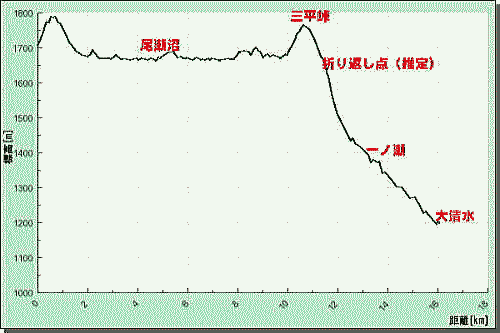 大清水→一ノ瀬→三平峠→尾瀬沼の標高図(試作)