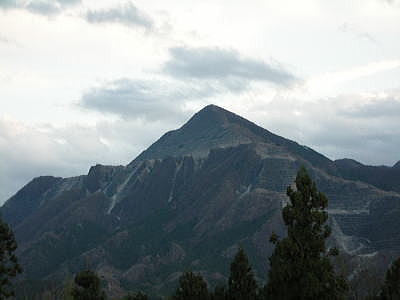 とくに北斜面で山体の崩壊が著しい。実際、北斜面では痛々しい程の露天掘りの後が見える。