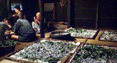 秩父(ちちぶ)といえば、札所巡りや12月上旬の夜祭が有名だが、忘れてはならない秩父事件のもととなった地場産業としての養蚕と絹織物がある。 今でこそ一時の隆盛はすっかり見られないものの、地形的に回りを山に囲まれ農地の少ない盆地の秩父では、養蚕製糸工業、絹織物が唯一、地域の産業として人々の生活を支えてきたのである。 ![]() 丘の上から撮影した現在の秩父 撮影:青山貞一 Nikon Digital Camera Cool Pix S8 特に、幕末開港以後は、生糸価格の好況により一帯の山村には生糸景気が訪れていたという。 当時は、農家が生産した生糸や絹織物が商家(仲買・問屋)などに集められ、横浜港から国内各地はもとより海外にも輸出されていた。 ちちぶ銘仙の最盛期に下の写真にあるように、絹紡糸を使うことがちちぶ銘仙の質の低下に繋がったと言われている。 秩父の農家では最後まで絹紡糸の使用に抵抗したと言われている。 ![]() 往事の絹織物工場 撮影:青山貞一 Nikon Digital Camera Cool Pix S8 折しも大政奉還後、明治政府は、版籍奉還(明治2年)、廃藩置県(明治4年)、学制頒布(明治5年)、徴兵制(明治6年)、地租改正(明治6年)と、次々と新しい政策を打ち出していくが、その中で農民の暮らしは次第に逼迫、農民一揆が頻発するようになった。 そして、明治15年から17年にかけての深刻な経済不況はさらに農家を苦境に陥れ高利の借金に苦しみ土地を手放したり破産に追い込まれ、さらには自殺者も多発する事態へと追いつめられていったのである。 その延長で秩父事件が起きた。 生糸や織物の価格が半分から三分の一まで低下したとされている。秩父事件の背景には地域経済、地場産業が直面したこうした時代状況が深く関わっており、まさに平成の今、私たちが直面している状況と酷似している。 グローバル化に伴いサブプライムローンのシステム崩壊など地球の裏で起きたことにより、モノカルチャー化した地盤産業が弱体化、学費等の高額な負担の一方で社会保障やセーフティネットの不足により人々は借金苦に陥りせっぱ詰まって政治や政府を変えようと自ら立ち上がるのである。 秩父事件については青山氏の論考に譲るとして、ここでは秩父の絹織物について述べてみたい。この絹織物は「秩父銘仙(めいせん)」として名を馳せている。 財団法人 民族衣裳文化普及協会、その設立目的は、わが国の優れた民族衣裳および、その染・織・文様・造形等に関する知識を普及して一般の理解を深め、併せて、民族衣裳の伝統技術の伝承および研究を奨励し、もってわが国文化の発展に寄与することとされており、つぎのように特徴づけられている。 ------------------------- 産 地:埼玉県秩父市 特 徴:銘仙織物の草分け的存在の織物。 「染色堅牢、地質強靭」な実用的な絹織物。「鬼秩父」の異名もある。 「絣製造装置」による解織である。 用 途:着尺地、丹前地、夜具地。 変 遷:秩父地方産の絹は、裏地として古くから広く用いられていた。 明治時代に銘仙が織られると、その実用性が珍重されて全国に広 がったが、昭和に入ってからは実用性本位の織物の需要が衰え、 秩父銘仙も衰退した。 ------------------------- ![]() ちちぶ銘仙館入り口 撮影:青山貞一 Nikon Digital Camera Cool Pix S8 秩父市にある「ちちぶ銘仙館」は、秩父銘仙の産業と文化芸術としての伝統を今に伝える施設として今も重要な役割を果たしている。 本館はアメリカ人の建築家ライト氏が考案したとされ、昭和五年建築されたモダンな建物であり、今でもその価値は変わっていない。 ![]() ちちぶ銘仙館入り口を背景にした筆者 撮影:青山貞一 Nikon Digital Camera Cool Pix S8 ![]() アメリカ人の建築家ライト氏が考案したちちぶ銘仙館の建築(昭和五年) 撮影:青山貞一 Nikon Digital Camera Cool Pix S8 ![]() 撮影:青山貞一 Nikon Digital Camera Cool Pix S8 ![]() 建築家ライト氏が考案したちちぶ銘仙館の建築(渡り廊下) 撮影:青山貞一 Nikon Digital Camera Cool Pix S8 ![]() かつての埼玉県繊維工業試験場秩父支場(移築したもの) 撮影:青山貞一 Nikon Digital Camera Cool Pix S8 ![]() かつての埼玉県繊維工業試験場秩父支場(移築したもの) 撮影:青山貞一 Nikon Digital Camera Cool Pix S8 「ちちぶ銘仙館」の内部には、染色や織物を体験するコーナーの他、昭和初期に発明された高度な織機類も残され、技術と伝統工芸が今に伝えられている。 この種の施設は、たとえば私達がよく行く群馬県六合村の赤岩とか、長野県上田市などにもあるが、この「ちちぶ銘仙館」はかなり内容が拡充している。 ![]() 映画「草の乱」ではこんな感じ。桑の葉の上にお蚕さんがいる ![]() まゆの見本 撮影:青山貞一 Nikon Digital Camera Cool Pix S8 ![]() 映画「草の乱」ではこんな感じ ![]() 撮影:青山貞一 Nikon Digital Camera Cool Pix S8 ![]() 糸操室 撮影:青山貞一 Nikon Digital Camera Cool Pix S8 ![]() 映画「草の乱」ではこんな感じ ![]() 糸操室 撮影:青山貞一 Nikon Digital Camera Cool Pix S8 ![]() 大型紡織機(電源につなげばそのまま稼働しそう?) 撮影:青山貞一 Nikon Digital Camera Cool Pix S8 ![]() 大型紡
