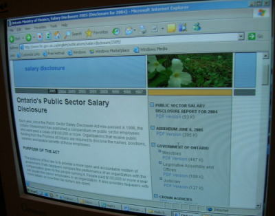下は私たちが訪問したカナダ・オンタリオ州議会。この議会事務局で給与を聞いたら、インターネットですべて公開されていると言われ、その場で上の画面を見せてくれた。