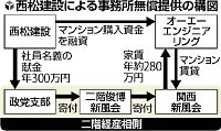 オーエー社は大阪市西区にマンションの一室を購入し、購入費用の約4000万円は西松建設が融資。西松側が部屋を事務所用に改装した。オーエー社と関西新風会は年間約280万円で賃貸する契約を結び、今年2月末まで、同会が使用していた。