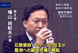 しかしながら、都議選で大敗した自公は、身の程知らず、特別委員会設置を妨害するなどもっての他だ。 こんな議会運営の最低限のルールすら無視する自公に東京都の有権者は怒り心頭となった。 その後、東京都議の民主党以上?に、東京都築地市場の豊洲への移転事業と新銀行東京事業に批判を強めてきた国政レベルの民主党が総選挙で怒濤の308議席をとるに及び、自公の悪あがきも限界に来たようだ。とくに東京選出の菅直人代表代行(現時)は、築地市場の豊洲への移転事業と新銀行東京事業批判の急先鋒である。 ![]() 出典:東京MXテレビ ![]() 出典:東京MXテレビ ![]() 出典:東京MXテレビ 今後、豊洲問題と特別委員会設置の設置は時間の問題である。 ところで、私は昨日、石原都政が抱える諸問題について知人と議論した。その中で当然のこととして築地市場の豊洲移転問題にも話しが及んだ。 築地市場移転問題は、周知のように移転先である豊洲の土地が工場跡地であり、さまざまな汚染物質により土地が高度に汚染されていることが事の発端である。東京都は巨額の測定分析費を投入しているが、金をかけ調査をすればするほど、土壌汚染の深刻さが浮き彫りとなるばかりである。 こともあろうか、東京都民の食の安全をあずかる中央市場が汚染のメッカに移転すること自体、言語道断である。反対を強行に押し切ろうとする東京都や石原知事には、裏があるのではないか、利権があるのではないかと思われても仕方がないくらいだ。 ところで従来、この築地市場移転問題は、計画、事業主体である東京都への汚染問題での批判という観点が重視されてきたが、よく考えてみれば、豊洲への移転は、当然のことながら、移設とはいえ中央市場の新設となる。したがって、法的には当然のこととして東京都が国に許可を申請し、国が許可を下すという許認可手続が存在する。 以下に根拠法である卸売市場法(昭和四十六年四月三日法律第三十五号)の条項のうち、許可の基準について示す。この卸売法が最終改正されたのは平成一八年三月三一日である。 ひとことで言えば、今後、民主党など野党が多数派となった東京都議会で。特別委員会が設置され、結果的に築地市場の豊洲移転が中止となればそれまだだが、そうならない場合でも、同問題を最終所管する国の農水省が卸売市場法を根拠に、今後、東京都から提出が予想される許可申請を不許可とすればそれで終わりである。 この間、東京都が巨額を使い行ってきた環境調査、環境アセスメント調査、各種土壌汚染分析結果に見られるように、こともあろうか世界一の規模となる食品の中央市場の立地先が汚染まみれである事実があれば、当然のこととして、農水省は堂々と不許可とすることができる。というのも、卸売市場の許認可は、以下の許可基準だけでなく、環境配慮、食品衛生などを配慮してなされるからである。 もちろん、東京都はそれを不服として万一、国に対して行政訴訟を起こすことは可能だが、私見ではまず東京都側に勝ち目はない。もちろん、民主党など野党が多数派をとっている東京議会が未然に計画を撤回すべきである。 |