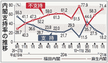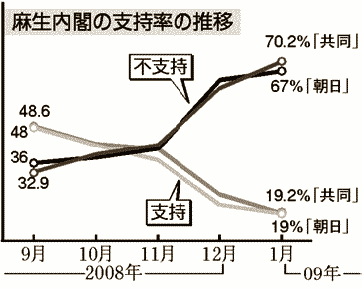 支持率20%を割りこんだ 麻生KY断末魔内閣 青山貞一 掲載日:2009年1月15日 独立系メディア「今日のコラム」 |