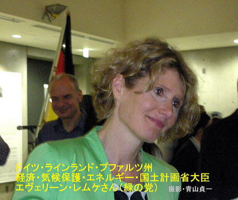 ドイツ大使館から日独脱原発自治体交流レセプションに招待を受けていましたので、昨日夜7時、港区南麻布にあるドイツ大使館に伺いました。 ![]() 東京都港区南麻布にあるドイツ大使館 撮影:青山貞一 Nikon Coolpix S8 2014-7-11 詳細は現在、沢山の写真を入れたブログを執筆中ですのでそちらをご覧いただくとして、昨日の会合はドイツのライン川が流れるラインラント=プファルツ州(ドイツ語:Rheinland=Pfalz)から州政府の女性大臣、大臣の政策スタッフ、公益事業者、企業関係者ら20人が来日しており、日本の脱原発首長らと交流する場に招待を受けたことになります。 在日ドイツ大使が出張中と言うことで、首席公使が挨拶した後、使節団長でもありますエヴェリーン・レムケ大臣が挨拶されました。右から二人目が首席公使のシュテファンさん。 ![]() 使節団長でもありますエヴェリーン・レムケ大臣の挨拶。左端の女性 撮影:青山貞一 Nikon Coolpix S8 2014-7-11 ![]() 日本側を代表し挨拶する三上湖西市長 撮影:青山貞一 Nikon Coolpix S8 2014-7-11 ![]() ドイツ16州におけるラインランド=プファルツ州の位置、図中左下(南西部) 出典:http://homipage.cocolog-nifty.com/map/2012/02/ii-cd1e.html エヴェリーン・レムケさんは、ラインランド=プファルツ州の経済・気候保護・エネルギー・国土計画大臣であり、ドイツの「緑の党」の主要メンバーでもあります。 立食パーティーだったので15分ほど大臣と立ち話したところ、いろいろ印象的なお話が聞けました。ラインランド=プファルツ州では、社会民主党(SPD)、緑の党だけでなく中道右派のキリスト教民主同盟(CDU)も再生可能エネルギー開発利用に積極的であること、同州では3.11直後の選挙で、社会民主党(SPD)が41議席、キリスト教民主同盟(CDU)が41議席に加え、エヴェリーン・レムケ大臣が所属する緑の党が18議席をとり、まさにキャスティングボートとなったとのことです。 ![]() チャーミングなエヴェリーン・レムケ大臣 撮影:青山貞一 Nikon Coolpix S8 2014-7-11 これはまさに福島第一原発事故によってドイツ国民の意識が明確に脱原発となった証左でもあります。その結果、緑の党が州の連立内閣に入ることになり、経済・気候保護・エネルギー・国土計画という主要な政策全般の大臣に彼女がつくことになったとのことです。 さらに同州では、州議会議員の60%が女性議員、5つある市町村議員の40%が女性議員ということで、連邦政府を遙かに超える政治分野での女性上位を実現しています。 さらに、ドイツの脱原発は長足の進歩を遂げており、同州では、すでに全エネルギー需要の過半を再生可能エネが占めており、60%の家庭、世帯でバイオガスの利用とそれを使ったバイオガス発電が普及しているとのことです。 全需要の過半を再生エネが占めていることについては、全ドイツでも実現していますが、それにともない先月下旬に、再生可能エネルギー優先法(略称: 再生可能エネルギー法、EEG)が改正されており、再生可能電力の増加で、電力の取引市場での価格が大きく低下しているそうです。 その結果、原発中心のフランスのKW当たりの電力料金よりも、ドイツの電力料金が安くなっているなど、当初の計画目標を遙かに超え再生可能エネが連邦全体、また州政府、基礎自治体に浸透しているようです。 今回の来日目的のひとつは、理念だけでなく同州における再生可能エネ開発の具体的システムや同州で行われている環境に調和した経済、とりわけ持続可能社会の実現のもととなっている産業、企業のあり方、内容を日本の脱原発首長自治体の市町村長に紹介することにあるとのことで、本日、東京でそのシンポジウムが行われています。 ![]() 日独脱原発自治体レセプション ドイツ大使館にて 撮影:青山貞一 Nikon Coolpix S8 2014-7-11 上述したように、詳細はブログに書きますので、そちらをご覧ください。 ドイツは連邦政府、中央だけでなく、地方こそ風力、バイオガス、太陽光など再生可能エネルギーの開発利用でエネルギー自立寸前と息巻いていました。 また私がこの間行ってきたことを含め自己紹介すると、日本には国民、市民、NGOなどの脱原発、再生可能エネなどに向けての諸活動を大学教授や研究所などの専門家の多くが支援しているのでしょうか? と聞くので、ほとんどの専門家、大学教授らはいわゆる「原子力村」の住人であることを告げると、私にぜひ、大臣らが進めている情報ネットワークに参加し、日本だけでなく欧州など他地域も支援して欲しいと言われました。 私からは日本などが東南アジア諸国や東ヨーロッパ諸国に原発を輸出しようとしていること、またお隣の韓国や中国で原発立地が盛んなことに関連し、現在、私達が日本で行っている事故時に影響、被害シミュレーションをそれらの国々の国民、市民からの具体的要望があれば、必要なデータを得た上でアドボカシー的に行う用意があると伝え、大臣は大変心強いと言って喜んでいました! なお、彼女は何しろアクティブで情熱的、私が言う
