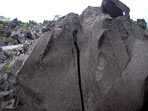 下の地図と写真は、この夏(2014年7月)、別荘の近くにある「鬼押し出し」に行ったときのものである。鬼押し出しは、下の地図を見てもらえば分かるように、浅間山の北北東数kmのところにある天明3年の浅間山大噴火の際、火砕流や溶岩流が流れ出してできた場所である。 一面、奇異な岩などが残っており、今では観光名所となっている。 ![]() 下の写真は鬼押し出しに行く前日、「鬼押しハイウェー」の休憩所から撮影した浅間山である。見て分かるように、浅間山の噴煙がダウンドラフト、ダウンウォッシュし、噴煙が山から休憩所の方向に流れ出ている。 ![]() 噴煙を上げる浅間山 撮影:青山貞一 Nikon Coolpix S8 2014年7月16日 下の2枚の写真は、鬼押し出しの奇岩である。いずれも、浅間山大噴火時の火砕流、溶岩流が固化してできた岩である。いずれも人間の身長よりはるかに大きく、2m以上ある。私達の別荘の裏にも高さが7m、2階建て家屋ほどの大きな岩(天明3年の浅間山爆発時のもの?)がある。 ![]() 鬼押し出しの奇岩 撮影:青山貞一 Nikon Coolpix S8 2014年7月16日 ![]() 鬼押し出しの奇岩 撮影:青山貞一 Nikon Coolpix S8 2014年7月16日 浅間山の山麓一帯は、標高が1000m~1200mある大きな浅間高原である。その北側は北軽井沢地区、南は軽井沢地区で、いずれも日本を代表する別荘地となっている。 しかし、その間にある浅間高原は、国立公園であるだけでなく、再度、浅間山が大噴火したときに備え、バッファーゾーン(緩衝帯)となっている。上の地図にあるように「鬼押し出し園」、「しゃくなげ園」、「浅間牧場」くらいしか人々が参集する場所はない。 登山者は浅間山の隣にある標高2000mの高峰山まで車で行った後、そこから登山することが多い。高峰山の山頂には、「ビジターセンター」など一部の公共施設があるものの、原則として住宅やホテルなどはない。一方、浅間山の登山者用にはかなりの数のシェルターが常備されている。 さらに浅間山の外輪山、黒斑岳(2200m級)に登ったときも、途中に何カ所かシェルターがあった。下はそのひとつの写真である。 ![]() 黒斑岳の槍ノ鞘近くにあったシェルター 撮影:青山貞一 Nikon Cool Pix S10 青山・池田・鷹取(環境総研): 浅間山の外輪山、黒斑山に登る(1) 青山・池田・鷹取(環境総研): 浅間山の外輪山、黒斑山に登る(2) ところで、下の写真は、その「鬼押し出し」にあったシェルター(もどき)である。現地では、シェルターとは書いてなく、休憩場所となっていたが、間違いなく避難場所、シェルターである。 今年の7月17日に撮影したものである。鬼押し出しには間違いなくシェルターがあった。 ただ、今回の御嶽山噴火をみると、軽トラック大の噴石が飛んできたという生存者の話があった。したがって、果たして、この程度のコンクリートの厚さで果たしてもつかどうか、ひょっとしたらシェルターそのものが壊れる可能性があるのではないかと推察する。もちろん、当然のこととしてないよりは、はるかにましである。。 ![]() 鬼押し出しの火山爆発時の一時避難小屋、シェルター 撮影:青山貞一 Nikon Coolpix S8 2014年7月16日 下の写真は2014年9月中旬に北軽井沢に行ったとき、浅間牧場で偶然撮影したものだ。この浅間牧場のシェルターには扉まであり、上から落ちてくる噴石だけでなく、横から入り込む噴石も避けられるようになっていた。 ![]() 撮影:青山貞一 Nikon Coolpix S8 2014年9月15日 この浅間牧場から晴れた日に見る浅間山は本当にすばらしい。別荘に行ったときは、必ず浅間牧場に登り、そこから180度、浅間山~草津白根の大展望を楽しんでいる。 下は、青山がクレパスで描いた早春の浅間高原から見た浅間山である。毎年、決まって4月にコブシが花を咲かせている。 ![]() クレパスで描いた早春の浅間高原からみた浅間山 ◆青山貞一:クレパスで描いた群馬県北西部の自然景観(1) ◆青山貞一:クレパスで描いた群馬県北西部の自然景観(2) また春まだ浅い時期に、この牧場のコブシの花とともに見る浅間山は格別であり、多くの人々が集まる。その意味でも、万一に備えることは重要である。 シェルターの写真を見ると、緊急退避所とあり、さらに群馬県とあるので、間違いなく県が設置した物(構造物)である。 そこで、現地で撮影した写真を調べたら、浅間牧場の案内看板のなかに、凡例として<緊急避難所>があった。凡例にある黄色の●がそれだ。地図のなかには、ざっとみて7カ所あった。 ![]() ![]() 浅間牧場の案内板、緊急避難所が7カ所あった 撮影:青山貞一 Nikon Coolpix S8 2014年9月15日 ※ 浅間山の火山活動解説資料(東京大学) 下の写真は、浅間牧場から遠望した草津白根山である。水墨画のようで美しい。 ![]() 浅間牧場からみた草津白根山(火山) 撮影:青山貞一 Nikon Coolpix S8 2014年9月15日 下は雪をいただく草津白根山である。言わずと知れた草津白根山は活火山であり、いつも立ち入り禁止ゾーンがある。 ![]() 撮影:青山貞一 Nikon CoolPix S8 ![]() 残雪のテーブルマウンテン、草津白根山 撮影:青山貞