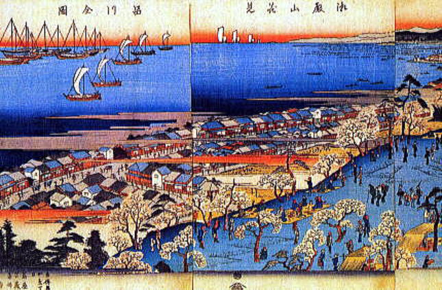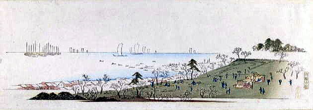 御殿山は歌川広重や葛飾北斎に何度も描かれていますが、下は安藤広重の『御殿山花盛』です。 ![]() 安藤広重の『御殿山花盛』 出典:Wikipedia 下は歌川広重の『御殿山花見』(1840年)です。 ![]() 歌川広重の『御殿山花見』(1840年) 出典:Wikipedia 下は、鳥文斎栄之の『御殿山花見』(1791年 - 1797年)」です。 ![]() 鳥文斎栄之『御殿山花見』(1791年 - 1797年)」 出典:Wikipedia なお、江戸時代、御殿山のすぐ前に東京湾があったのですが、その後の埋め立てで大幅に地形が変わっています。 下は「東京みなと館」館長、大野伊三男氏が書かれた『東京港埋立のあゆみ』にある東京湾の埋め立ての経緯を示した地図ですが、左は1905年時点の東京湾、右はほぼ現在の東京湾です。 御殿山の地先がすぐ東京湾の海面であることが分かります。現在は埋め立て地の上に東京入管事務所、その南に八潮ニュータウン、さらにその南には巨大に埋め立てられ羽田空港が開発されています。 ![]() 出典:東京みなと館」館長、大野伊三男氏が書かれた『東京港埋立のあゆみ』、東京都港湾局 つづく |