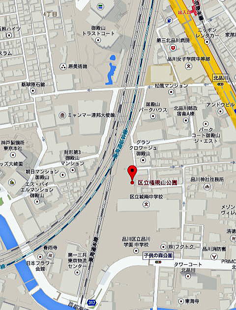 ◆「権現山公園」到着 かくして、江戸時代、御殿山の一角であり、徳川家康が近くに品川御殿をつくりサクラの花見をしたという権現山に到着しました。ここは現在、丘の上に品川区立の小さな公園、それもサクラが沢山ある権現山公園となっています。 現地は下の写真のように、住宅地のなかの街路のどん詰まりに急な階段があり、その上に権現山公園がありました。規模はそれほど大きな公園ではありませんが、高台にあるので見晴らしはよいです。 ![]() 撮影:青山貞一 Nikon Coolpix S8 2015-4-2 ![]() 撮影:青山貞一 Nikon Coolpix S8 2015-4-2 下のグーグルマップの赤い目玉マークが公園です。北側に御殿山トラストコート、南側にタワーコート北品川、南西に目黒川が見えます。 ![]() 出典:グーグルマップ 下は権現山公園の標識です。果たしてここに来る区民の何%が権現山の意味を知っているか、また御殿山との関係を知っているかは不明ですが、歴史的、文化的な地名を史蹟としてでは無く、公園名として残していることは良いことだと思います。 しかし、史蹟としていないので、以下のプレート以外何の解説看板も、教育委員会の解説もありません。今年は徳川家康没後400年の記念すべき年ですが、残念ながら、公園には何一つ家康に関する説明はありませんでした。至極残念なことです。 もっぱら、これは御殿山地区でも同じことです。今回、都合3日、5回御殿山地区(北品川4,5丁目)を歩き回りましたが、どこにも江戸時代の桜の名所であるだけでなく、御殿山の由来、名所旧跡としての解説はありませんでした。これも至極残念なことです。 郵便配達などの関係で東京の地名、それも歴史を刻んでいる地名ははほとんどすべてなくなりました。たとえば港区六本木の六本木ヒルズがある場所は,その昔は材木町とよばれていました。現在東京23区で古い地名が残っているのは新宿区の一角だけです。 地名がなくなると言うことは、その地域の歴史文化が無くなるのに等しいことを私達はもっと真剣に考えるべきであると常々思っています。 その意味で言えば、かつて御殿山をとり仕切っていたソニーは、現在、高輪の一角にソニー歴史資料館を残すのみで跡形も無くなっています。これも品川区民としては大変残念なことです。 下は権現山公園のサクラです。 訪れたのは平日の昼でしたが、すでに何組かがサクラ見学の宴会をしていました。またいわゆる席取りをしているグループもいました。サクラはさすが大変秀逸ですばらしいです! ![]() 撮影:青山貞一 Nikon Coolpix S8 2015-4-2 公園からは、旧御殿山ヒルズ、現在の御殿山トラストタワーのビルが北北西に樹木越しに見えました。 ![]() 撮影:青山貞一 Nikon Coolpix S8 2015-4-2 ![]() 撮影:青山貞一 Nikon Coolpix S8 2015-4-2 南東の方角にはタワーコート北品川の超高層マンションが眼前にそびえていました。この唐突に建つ超高層マンションは、おそらく地主が都市産業、不動産会社から利殖、相続対策などで薦められ建設したものの、リーマンショックなどの大不況で中断したマンションと推察されます。 少し調べたら次のような記述がみつかりました。 「2009年築の当物件ですが、リーマンショックの影響があったためか竣工前後まで「賃貸」、「分譲」どちらになるのかさえ不明で、結局「賃貸」となった後もそのドタバタが影響したのか空室がなかなか埋まらず礼金0はもちろんのこと、フリーレントキャンペーンをずっと行っていたのが印象的です。」 現地に行ってみればすぐに分かりますが、東海寺のブログで書いたように、すぐ隣には徳川家光が関わった大徳寺系の由緒ある東海寺があります。またすぐそばには、家康の権現山があります。 超高層マンションは両方の歴史的文化的な場所を台無しにしているのです。東京の不動産屋は、土地の由来などにお構いなくこの種の超高層マンションの建設を進めます。その結果、東京を中心に首都圏ではありとあらゆる場所で、歴史、文化、それに上から眺められると言う意味でプライバシーが破壊されています。もちろん、まちの眺望、景観も壊されています。 ![]() 撮影:青山貞一 Nikon Coolpix S8 2015-4-2 公園そのものは児童公園の規模なので、写真のように児童用の滑り台などの遊具が置いてありました。 ![]() 撮影:青山貞一 Nikon Coolpix S8 2015-4-2 ![]() 撮影:青山貞一 Nikon Coolpix S8 2015-4-2 権現山公園視察後、私は東海道線に沿って北に向かい、東海道線、東海道新幹線、JR山手線、など8種の鉄道をまたぐ跨線橋に行きました。 この跨線橋は、またぐ鉄道の種類の多さだけでなく、鉄道の歴史の重さからしておそらく日本一の跨線橋と言えるはずです。跨線橋については以下の解説をご覧ください。