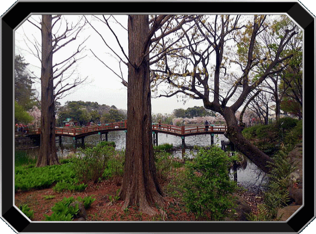 水生植物園 サクラ広場 池月橋と千束八幡神社 勝海舟夫妻墓所と西郷隆盛留魂碑![]() 出典:東京都大田区 ![]() 広重「名所江戸百景」に描かれた洗足池 出典:Wikipedia 以下は池月橋の周辺です。 ![]() 池月橋 撮影:青山貞一 Nikon Coolpix S8 2015-4-6