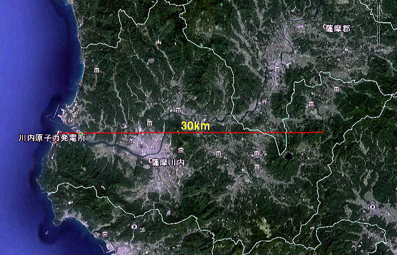 出典:グーグルアースより距離を計算 上甑島以外はまちの中心部との間の距離