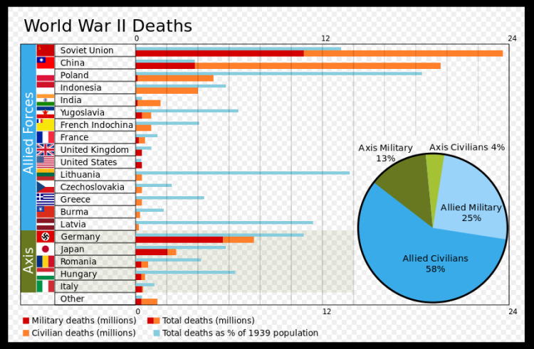 数字の出典は<第二次世界大戦における各国の人的損失> Wikipediaです。