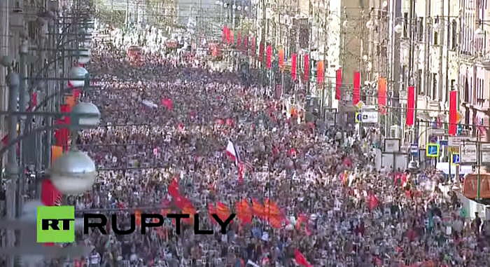 大衆行動「不滅の連隊」に参加するため、モスクワの中心部に 50万人以上の人達が集まった。