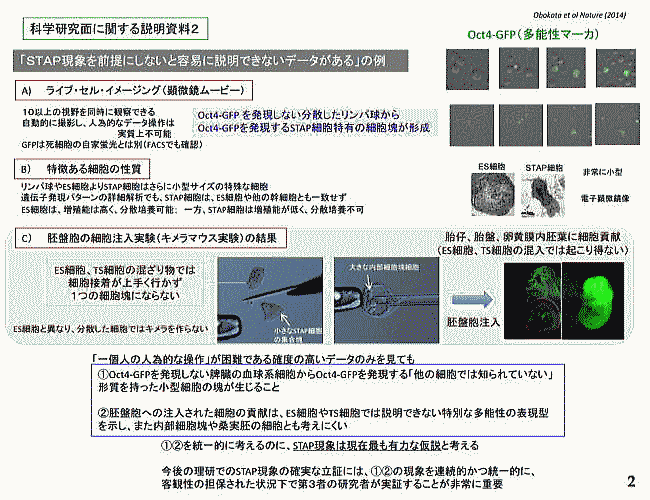 以下に、STAP現象、細胞などの研究に関連する関係者の記者会見、質疑、主な報道、ブログのうち、公開されているYouTube動画、PDF、htmlを時系列的に掲載します。今後、関連情報を追加する予定です。 <参照文献・動画一覧> 2014/1/30 STAP細胞発見 NHKニュース 放映 https://www.youtube.com/watch?v=KyR3DJHlufI 2014/4/1 小保方晴子STAP細胞最終報告 理研会見 2014/1/30 https://www.youtube.com/watch?v=RXTorTMpAqQ ※小保方晴子経歴・研究実績等 2014/4/9 小保方晴子氏記者会見 https://www.youtube.com/watch?v=Nbr6WrhJCW4 2014/4/7 (全録)「STAP細胞」検証計画について理化学研究所が会見(1/3) https://www.youtube.com/watch?v=hYLzHG87yU4 2014/4/7 (全録)「STAP細胞」検証計画について理化学研究所が会見(2/3) https://www.youtube.com/watch?v=kJyXSJ03-og 2014/4/7 (全録)「STAP細胞」検証計画について理化学研究所が会見(3/3) https://www.youtube.com/watch?v=83LKlS8h8vI 2014/4/9 理研、丹羽仁史 「検証実験」に関する会見動画(質疑) https://www.youtube.com/watch?v=Q-0YjeeJyNc ※丹羽仁史経歴・研究実績等 2014/4/9 理研、丹羽仁史 「検証実験」に関する会見動画(検証実験計画) https://www.youtube.com/watch?v=TZk_gzVW4YI 2014/4/16 笹井芳樹氏(理化学研究所) 記者会見動画 https://www.youtube.com/watch?v=56E6gfI6aQE ※笹井芳樹経歴・研究実績等 2014/4/16 笹井芳樹氏(理化学研究所) 記者会見資料 配布資料(以下参照) http://www3.riken.jp/stap/j/s3document1.pdf ![]() ![]() ![]() 2014/6/12 理研改革委 小保方STAP再現実験への参加提言 https://www.youtube.com/watch?v=Gy78qUc8gWU 2014/6/12 【STAP細胞】 改革委員会による記者会見 https://www.youtube.com/watch?v=toR96dWoQ64 2014/6/12 丹羽仁史(理化学研究所)STAP細胞の会見 https://www.youtube.com/watch?v=TZk_gzVW4YI 2014/6/16 若山照彦氏 STAP細胞 第三者解析結果報告による記者会見 https://www.youtube.com/watch?v=4kAGUdkH3pY 2014/6/16 STAP細胞:「あることを示す証拠はない」若山教授 毎日新聞 2014/6/16 「STAP現象は合理性高い仮説」 理研・笹井氏が会見 日経新聞 2014/7/21 毎日新聞の暴力行為 2014年7月21日の朝刊記事の暴力 ・・・戦後の記録に残る不祥事 武田邦彦 https://www.youtube.com/watch?v=YKQ6Ts3ILeI 2014/7/23 STAP細胞解析結果は誤り 若山氏、会見内容を訂正 朝日新聞 2014/7//2 英国の科学雑誌『Nature』がSTAP細胞研究論文2報を取り下げ 発表 2014/7/27 NHKスペシャル 調査報告 STAP細胞 不正の深層 放映 http://www.miomio.tv/watch/cc84991/ 2014/7/29 理化学研究所がSTAP細胞再現性の検証実験計画を発表 動画 https://www.youtube.com/watch?v=eTd3-edFTBs 2014/8/5 笹井芳樹氏(理化学研究所) 理化学研究所内で自殺 2014/8/5 「検証実験には影響しない」 理研が見解 産経新聞 2014/8/5 理研・笹井氏自殺に関する緊急記者会見 全文 「小保方氏含め、手厚くサポートしていく」 http://logmi.jp/18979