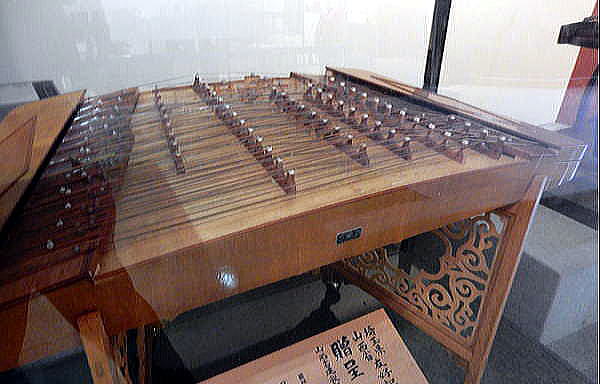 ◆民族楽器 編鐘 ![]() 「神怡舘」内部展示より 撮影:池田こみち Nikon Coolpix S9900 2016-12-22 中国の民族楽器、編鐘(へんしょう)は、音高の異なる複数の鐘を枠に吊るした古代中国の打楽器です。 概要 春秋時代ごろに出現した。上流社会で使われ、権力の象徴でもあったとされています。組み合わせる鐘の数は16、7、13、32など様々です。 1978年、湖北省随県の戦国時代初期の遺跡曾侯乙墓からおびただしい数量の副葬品が出土しましたが、それらの中に、3層の木製の横木と高さが最大153.4cmある65点総重量2567kgの編鐘、編磬32点・鼓・瑟・排簫などの楽器のセットが含まれておりました。 しかも完全な状態で保存されている編鐘として注目されました。のちの研究によると、1つの鐘は2つの音を出すことができ、音階は七音音階で、音域は5オクターブ半、中心音域では12の半音が揃っています。 曾侯乙編鐘とよばれ、国家一級文物(中国の国宝)に指定されています。ほかに、河南省固始県の番国故城遺跡侯古堆1号墓や、雲南省・山西省・湖北省の古代王侯貴族の墓などから発見されています。 1116年、北宋から高麗に伝えられ、祭礼楽に不可欠の楽器として使われていました。日本列島には編鐘を使用する音楽は伝えられていないものの、13世紀伝来と考えられている編鐘が栃木県の日光東照宮に保存されています。 編鐘の階名について 編鐘の階名は、伝統的な五声のうち角以外の4つを基本階名としています。具体的には、宮から完全5度を取っていく順番で説明すると、「宮(C、以下カッコ内は宮をCとしたときの音名)」、「徴(G)」、「商(D)」、「羽(A)」までは五声の階名そのままですが、その羽から完全5度を取ったときの音、すなわち五声では角に当たる音の階名は「宮角(E)」と称して新たな基準とし、そこからまた完全5度を取るごとに「徴角(B)」、「商角(F#)」、「羽角(C#)」とし、そこから更に完全5度を取ったときの音は「宮曽(G#)」と名付けてまた新たな基準とし、そこからまた更に完全5度を取るごとに「徴曽(D#)」、「商曽(A#)」、「羽曽(F)」としています。 すなわち編鐘の階名では「角」の文字は基本階名としては採用されず、「曽」とともに「宮」・「商」・「徴」・「羽」の下に付け加えて変化音を示す語として採用されているのです。宮をCとして音高順に並べ替えて表にまとめると次のようになります。 ![]() 以下は編鐘はじめ山西省の民族楽器の写真です。 ![]() 「神怡舘」内部展示より 撮影:青山貞一 Nikon Coolpix S9900 2016-12-22 以下は中国の古筝などの民族楽器の写真です。 ![]() 「神怡舘」内部展示より 撮影:池田こみち Nikon Coolpix S9900 2016-12-22 ![]() 「神怡舘」内部展示より 撮影:青山貞一 Nikon Coolpix S9900 2016-12-22 ![]() 「神怡舘」内部展示より 撮影:池田こみち Nikon Coolpix S9900 2016-12-22 ![]() 「神怡舘」内部展示より 撮影:青山貞一 Nikon Coolpix S9900 2016-12-22 以下は、中国古箏の演奏例です。 出典:https://www.youtube.com/watch?v=00V0mrgmMks ![]() 「神怡舘」内部展示より 撮影:青山貞一 Nikon Coolpix S9900 2016-12-22 ![]() 「神怡舘」内部展示より 撮影:青山貞一 Nikon Coolpix S9900 2016-12-22 下のポスターにあるように、山西省は太鼓を使った鼓楽があるようです。 ![]() つづく |
