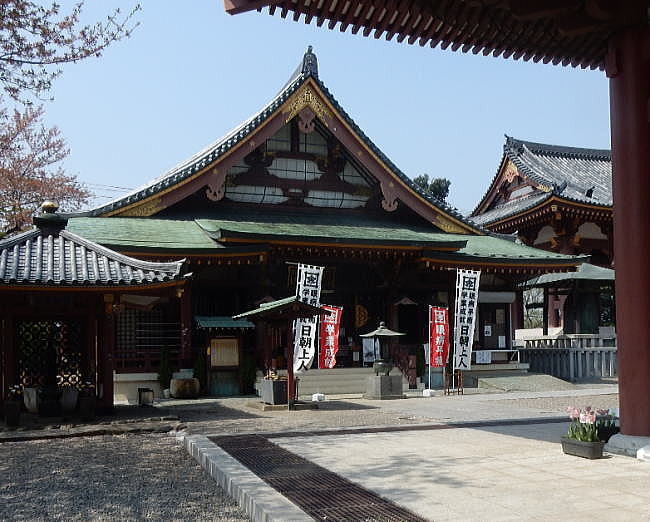 | サクラ速報 日蓮と本門寺 池上の歴史 地形と地理 総門と此経難持坂 仁王門・日朝堂・長栄堂 鐘楼・日蓮像・五重塔 大堂・経蔵・本殿 休所と松濤園 多宝塔 紀伊徳川家募所 歴代聖人御廟所 日蓮聖人御廟所 所蔵文化財と霊宝殿 本門寺墓所 参道・甘味所 洗足池概要 日蓮と洗足池 塔頭① 塔頭とは、本行寺 塔頭② 実相院、真性院、西之院、厳定院、南之院、理境院 塔頭③ 覚源院、本成院、本妙院、常仙院、中道院 塔頭④ 東之院、安立院、法養寺、永寿院、心浄院 塔頭⑤ 妙雲寺、養源寺、照栄院、長勝寺、山光寺、善慶寺 境内・伽藍 ![]() 境内マップ 出典:池上本門寺公式Web ・仁王門 仁王門は大堂正面に建つ二重門。旧国宝の山門は、1945年(昭和20年)空襲で焼失。仁王門として1977年(昭和52年)に再建されました。門内には彫刻家圓鍔勝三が、アントニオ猪木をモデルに制作した仁王像が安置されていました。 ![]() 本門寺の仁王門 撮影:斉藤真実 Canon IXY 10S 以下はソメイヨシノ満開時に大殿を背後に撮影した仁王門です。両側にソメイヨシノが満開で咲いていました。 ![]() 出典:Wikimedia Commons 下は仁王門に掲げられている長栄山の額の拡大です。 ![]() 撮影 青山貞一 Nikon Coolpix S9900 2016-4-6 下は仁王門の屋根瓦。模様は、本門寺の寺紋である「三ッ橘」をかたどったものです。 ![]() 撮影 青山貞一 Nikon Coolpix S9900 2016-4-3 下は新たに仏師原田佳美作の仁王像です。2001年(平成13)10月に開眼供養が行われ奉られました。仁王像が奉納され、2001年10月に開眼供養が行われました。 ![]() 本門寺の仁王門 撮影:斉藤真実 Canon IXY 10S ![]() 本門寺の仁王門 大堂がわから撮影 撮影 池田こみち Nikon Coolpix S9900 2018-4-4 ・日朝堂 仁王堂のすぐ隣に日朝堂があります。このお堂に祀られる日朝は身延山11世で、61歳の時に失明しましたが、後に視力を回復したことから、眼病平癒、学業成就の利益があるとされています。 日朝堂は、常唱堂、題目堂といろいろに呼ばれていますが、一般には日朝堂の名前で親しまれています。日蓮聖人(1222-1282)は、お題目を唱えることを、ご自身の身命を投げ打って私たちにお教え下さいました。私たちは清浄な心で熱心にお題目をお唱えすることにより真実の生き甲斐を感ずるようになります。このお堂は本門寺の境内に古くからありました。享保10年(1725)ごろの本門寺絵図にも現在の位置に常唱堂と書いてあります。 昭和20年(1945)4月15日に本門寺全山は大空襲を受け、その時に常唱堂も焼失しました。そのお堂は寛政11年(1799)に加藤甲斐守が建造したものでした。現在のお堂は、昭和47年7月25日に多くの信者の丹精によって新築されました。 このお堂のご本尊は大曼荼羅で、その前に行学院日朝上人の尊像が安置してあります。 ![]() 日朝堂 撮影:青山貞一 Nikon Coolpix S9900 2018-4-4 ![]() 日朝堂(左)と仁王門(右) のソメイヨシノ 撮影:青山貞一 Nikon Coolpix S9900 2018-3-25 以下は2016年4月参拝時の写真です。 ![]() 撮影 青山貞一 Nikon Coolpix S9900 2016-4-3 日朝堂で参拝する池田こみちです。 ![]() 撮影 青山貞一 Nikon Coolpix S9900 2016-4-3 ・長栄堂 仁王門の斜め前に長栄堂があります。長栄堂は、日蓮聖人が佐渡配流中に、守護神となった長栄大威徳天を祀っている堂です。以下はその解説です。 本門寺の守護神として奉安し奉る長栄大威徳天は、その昔、日蓮聖人が佐渡ヶ島御配流中、塚原三昧堂に於いて日夜法華経御読誦の最中、初めて白髪の翁というお姿で御出現になり、「法華経の行者を守護し、別けて海上安全・所縁吉祥の守護を成さん」と、お誓いになり、日蓮聖人御生涯の間、影身にお添いしご守護し、神変不思議の通力をお現しになりました。 日蓮聖人が、此の池上で御入滅の後は、池上本門寺の山号の如く、長栄大威徳天と仰がれ、永くこの山に留まり、量り知れない神力を持って「末法万年の末までも法華経の行者を守護すべし」と仰せになったこから、我々を済度なされる尊神として崇められるようになりました。そして、今日までその威徳は、狭小なることなく広大無辺にして、長栄山池上本門寺は益々隆昌し、信仰帰依の人々は、御守護の御利益を戴けると言われております。 ![]() 長栄堂付近の満開のソメイヨシノ 撮影:青山貞一 Nikon Coolpix S9900 2018-3-25 ![]() 撮影 池田こみち Nikon Coolpix S9900 2016-4-6 つづく |