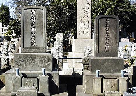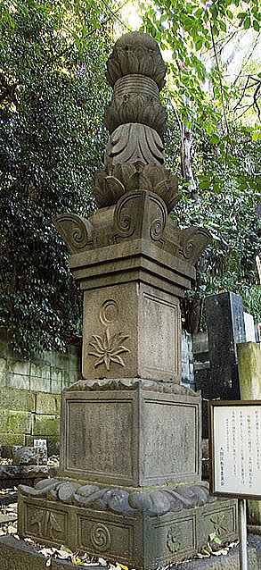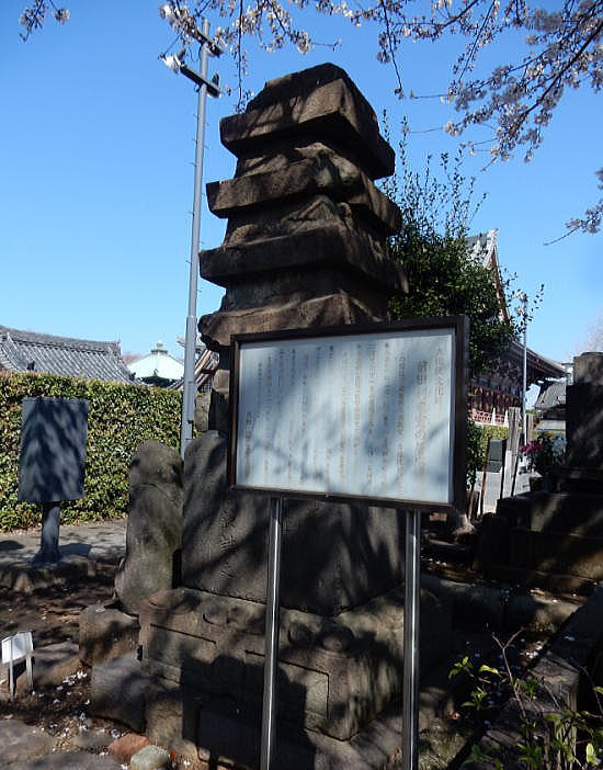 | サクラ速報 日蓮と本門寺 池上の歴史 地形と地理 総門と此経難持坂 仁王門・日朝堂・長栄堂 鐘楼・日蓮像・五重塔 大堂・経蔵・本殿 休所と松濤園 多宝塔 紀伊徳川家募所 歴代聖人御廟所 日蓮聖人御廟所 所蔵文化財と霊宝殿 本門寺墓所 参道・甘味所 洗足池概要 日蓮と洗足池 塔頭① 塔頭とは、本行寺 塔頭② 実相院、真性院、西之院、厳定院、南之院、理境院 塔頭③ 覚源院、本成院、本妙院、常仙院、中道院 塔頭④ 東之院、安立院、法養寺、永寿院、心浄院 塔頭⑤ 妙雲寺、養源寺、照栄院、長勝寺、山光寺、善慶寺 池上本門寺には今まで紹介した以外に、多くの墓所、墓石があります。以下にその主なものを紹介します。 ◆前田利家室層塔 池上本門寺・ ー死後の冥福を祈り、生前に建立した寿福院の十一層塔ー ![]() 撮影:青山貞一 Nikon Coolpix S9900 2018-3-25 江戸幕府 が開府され、幕藩体制を確保するために大名の妻が江戸に集められました。寿福院は利家の正室芳春院(2代利長生母)付の侍女でしたが、利長の側室となり三代利常を生み、家康との関係を悪化させないため関ヶ原前年に芳春院が人質として江戸の送られ、15年にわたる人質生活ののち金沢に戻ります。替わりに送られたのが寿福院でした。彼女が生前に死後の冥福を祈り造ったのが十一層塔である。現在は五層のみが残されています。 この前田利家室層塔は五重塔参道入り口左側にあります。高さ3.77メートル。日樹の銘文があり、造立年代は元和8年(1622年)で前田利家夫人寿福院日栄が生前に建てた逆修供養塔です。彼女は熱心な法華信仰者であり、京都の妙顕寺にも同様な層塔を造立しています。天保4年(1833)に修復が加えられている。この墓域は現在整理が行われています。 出典:東京都大田区教育委員会 『馬込と大田区の歴史を保存する会』について ※逆修供養塔とは 逆修とは自分より先に亡くなった年下という意味があり、若くして他界した誰 かを慕い供養したもの。または生前に自分の墓碑や卒塔婆を建て供養し死 後に功徳を得る習わしに従って、建立したもの。 ◆松平頼真卿 正室 永昌院 薫姫の墓 ~四国讃岐守 6代高松藩主松平頼真卿 正室の墓~ この墓は、水戸徳川家の流れをくむ讃岐高松藩6代藩主の正室「永昌院 薫姫」(紀伊徳川宗直御息女)(1744~1785)のものです。 正室でありながら子はなかったようで、8代高松藩主「 松平頼儀」(1775~1829)は、側室の即就院 中山ハナの長男 頼儀(雄丸)です。墓の場所は、力道山墓へ向かう途中、銀幕の女王「粟島すみ子墓」の斜め後ろに位置しています。 ![]() 出典: 『馬込と大田区の歴史を保存する会』について ◆於須磨の方 ~八代将軍 徳川吉宗が紀州の時の側室 於須磨の方~ ![]() 文、写真の出典: 『馬込と大田区の歴史を保存する会』について 於須磨(おすま)の方は、八代将軍徳川吉宗が紀州藩主の頃の側室である。また、九代将軍徳川家重の生母です。 家重を生んだ後も懐妊したが、難産のため母子ともに亡くなった。 正徳3年(1713)享年26才、戒名は「深徳院妙順日喜大姉」です。上がその写真です。場所は五重塔から力道山の墓へ向かう途中右側にあります。時代劇にも登場するので、中高年の方はご存じかも知れません。 ![]() 文、写真の出典: 『馬込と大田区の歴史を保存する会』について ◆出羽米沢藩上杉家の墓所 ー大堂を望む五重塔横にある、出羽米沢藩上杉家の墓所ー ![]() 文、写真の出典: 『馬込と大田区の歴史を保存する会』について 出羽米沢藩上杉家の墓は、五重塔参道正面から見ると左にあります。2005年の五重塔修理に伴い周辺墓地の改修が行われ現在地に移されました。元の位置は五重塔裏側にあたるところにありました。写真左は上杉家4代綱憲室で宝永2年46才で死去、「円光院殿日仙榮寿大姉」(紀伊徳川光貞の娘)の墓所です。 五重塔保存改修に伴い位置を移動するため、墓(宝塔)の調査が行われた。基盤は7メートル四方もあり、その地下には1メートル堀り石室が造られていました。木製の骨を納めたともわれる箱、出土品は白磁壺などです。 下の写真は墓域に上がる階段、右とその奥に見える墓石群は肥後熊本藩細川家の墓域です。 ![]() 文、写真の出典: 『馬込と大田区の歴史を保存する会』について ◆加藤清正家供養塔 ![]() 出典:本門寺霊宝殿Web 加藤清正公の娘(あま姫)で御三家紀州藩祖徳川頼宣公の正室となった瑤林院殿浄秀日芳大姉が、慶長16年(1611)6月14日に没した厳父清正公(浄池院殿日乗台霊)を供養するため、第18世日耀聖人代の慶安2年(1649)の命日に建立しました。共に熱心な法華信者であった父娘の、信仰心と孝養心がうかがわれ、貴重です。 ◆肥後熊本藩細川家の墓所 ー大堂を望む五重塔横、肥後熊本五十四万石 細川家の宝塔ー ![]() 文、写真の出典: 『馬込と大田区の歴史を保存する会』について 三代光尚の側室「清高院日圓大姉」、宝永7年(1710)逝去(四代綱利生母)。写真右側の宝塔です。真ん中の宝塔は熊本新田藩初代細川宣紀側室「高正院妙泉日流大姉」(五代宣紀生