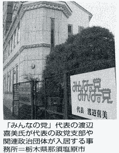 「みんなの党・渡辺代表に企業献金5億円」(世田谷通信)
