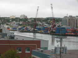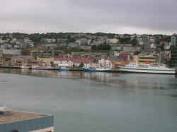 セントジョーンズ滞在最後の日、セントジョーンズ港のまわりを歩いてみた。 歩いたのは、下の写真の左側である。左側の左はずれが港の出口。その先端に灯台がある。 以下の地図は歩いた順路。矢印の先端が灯台であり、対岸はシグナルヒル、海側は北大西洋である。 ![]() 下はセントジョーンズ市街地の反対側から市街地をとった写真である。 港にたくさんの旅客船や漁船が停泊している。 この港は自然の地形を利用した水深もある良好な港で、その昔は軍港としても遣われていたという。