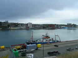 ここはもうセントジョーンズ港の出口。ここから北大西洋となる。下はフランス国旗を掲げた船。港からフランスに向け出て行った。 ![]() |