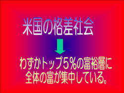 下のパワーポイント画像は、政策学校一新塾(青山は代表理事)で最近行った「国際情勢の中の世界と日本〜潮目の変化を読む〜」という講演に使ったものだ。米国ではわずか5%の富裕層が全体の資産が集中している。