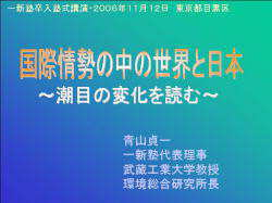 私見では、まさに国際情勢は今年の秋から大きな潮目となっており、その変化をいかに読むかがきわめて重要なものとなっていると感ずる。