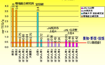 日本人の多くは、ダイオキシン問題は所沢ダイオキシン騒動の後、議員立法で制定されたダイオキシン類対策特別措置法によって、あたかも問題がすべて解決したような錯覚に陥っていると言っても過言ではない。 しかし、日本政府は、こと食品や飼料に含まれるダイオキシンについては、韓国のような基準を一切設定していない。 ダイオキシン類対策特別措置法で設定したのは、大別し、(1)焼却炉からでる排ガスや焼却灰、排水中のダイオキシン類の規制基準、それに(2)大気、土壌、水に含まれるダイオキシン類の環境基準(排出基準、環境基準)のみである。 ... 今回、なぜかくも韓国政府が牛肉中のダイオキシン類を問題にしたかについて、さまざまな憶測が政治家などから出されているある。 たとえば、レームダック化しているノム・ヒョン大統領が基地問題、駐留米軍反米問題、イラクへの韓国軍派遣問題にはじまり、ありとあらゆる反米政策を打ち出しており、その一環であるという見方もある。 だが、こと、今回のダイオキシン問題は、そうではないだろう。もちろん、韓国政府が発表している分析値が事実であり、通常の測定分析方法に間違いがなければのことであるが...。もし、事実であり間違いが無ければ、決して韓国の今回の措置は、反米的な言いがかりなどとは言えない。 .... と言うのも、主要先進国で食品や飼料に含まれるダイオキシンを公的にあるいはまともに規制していないのは、今や日本くらいとだからである。 あえてここで”まとも”と言ったのは、次のような理由による。 まず、日本を含め主要先進国では、厳しさの程度はあるものの、1日当たり生涯摂取し続けて健康上問題が少ないとされる指針を持っている。これをTDI(耐容一日摂取量)と言う。どの先進国もこれを定めていると言ってよい。しかし、このTDIは一日に食物、大気、水、....から人間が摂取する総量についての指針に過ぎない。 問題は「TDI」としてではなく、魚介類、肉類、乳製品、野菜など、食べ物、食品毎にそれに含まれるダイオキシン類について濃度基準をもっているかどうかだ。それらの食品、飼料が一定の値を超過した場合、出荷停止とするなどの措置があるかどうかが重要である。 .... かの所沢ダイオキシン騒動では、日本政府が食品単体にダイオキシン濃度の指針を設定していなかったがために起こったと言ってよい。 1998年暮れ、農家から頼まれが分析した結果を評価する「物差し」がなく、結果的に放映したテレビ朝日と環境総研に、国、メディアからのバッシングが集中した。このダイオキシンの分析の実務は、環境総合研究所ではなくカナダの民間分析機関が行った。 もちろん、この問題でテレビ朝日と環境総研に手紙、電話、Fax、メールなどで寄せられた圧倒的多くの反響は、国、自治体、事業者が不作為(やるべきことをしないこと)を決め込んでいる中、よくぞここまでやってくれたと言うものであった。 では、日本中を震撼とさせた、あの所沢ダイオキシン騒動の後、日本政府が肉、魚介、牛乳、野菜など個別の食品、飼料についてダイオキシンの濃度基準を設定しかと言えば、まったくノーである!! 現在に至るまで、日本政府はもとより、自治体、事業者いずれも濃度基準や指針を設定していない。 .... 話しを戻そう! 韓国で米国産牛に含まれるダイオキシンが基準を超えているとして韓国政府(農林省)が牛肉の韓国への市場化を規制したのは、言うまでもなく韓国に基準なり指針が存在し、しかるべき機関が牛肉に含まれるダイオキシンを測定分析し、評価、監視していたからである。 これが最も重要な点である。 ....... ところで、青山貞一、池田こみち(環境総合研究所副所長)、そして最近では鷹取敦(環境総合研究所調査部長)は、毎年、世界各国で開催される通称、国際ダイオキシン会議に研究論文を提出し、発表してきた。 参考:Dioxin Related Research Papers in International Symposium on Halogenated Environmental Organic Pollutants and POPs 2004年、ドイツのベルリン工科大学で開催された国際ダイオキシン会議で、ドイツ政府の関係者は、EUが食品及び飼料に含まれるダイオキシン類に関する次の3つの基準、指針を提示した。 それは@最大許容値(Maximum limits)、A行動指針値(Action levels)、B目標値(Target levels)の3つ(3段階)である。@→A→Bの順で厳しい値となっている。通常、出荷停止などの根拠となるのはAの行動指針である。 もちろん、EUは単に物差しを考案しただけでなく、以降、順次、EU各国で指針となり実施に移されている。またドイツのようにEU統一指針より厳しい数値を設定しているくにもある。 出典:EU, Commission proposes strategy to reduce dioxin in food and feed Reference: IP/01/1045 Date: 20/07/2001 .... 少々専門的となるが、それら食品、飼料毎に提案された指針、基準の値を巻末に示すので見てもらいたい。 たとえば、牛、豚、鶏などの肉類は、1脂肪グラム当たり、3pgが行動指針となっている。乳製品も同じく3pgである。この値は、韓