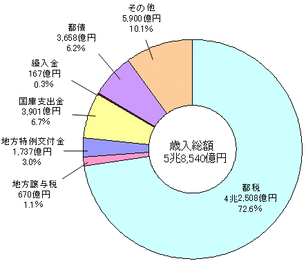 図1 東京都の財政規模の推移 ![]() 出典:東京都 世界有数の中央集権国家である日本は、政治だけでなく経済も東京都に一極集中している。 その結果、地方自治法で一つの自治体に過ぎない東京都は、日本の首都として1200万人を超える人口が住み、多くの巨大企業の本社が立地することで、他の道府県に比べはるかに富裕な税収を得ている。 東京都の税収には、都民税、事業税、固定資産税、不動産取得税、事業所税、繰入地方消費税、自動車税、自動車取得税、たばこ税、ゴルフ場利用税などが含まれる。それらの合計は平成18年度では予算レベルで4兆5円億円にも達している。 平成17年度実績で見てみると、東京都の一般会計予算は5兆8,540億円、その72.6%にあたる4兆2,508億円が都税で賄われており、図2にあるように、東京都の歳入総額に占める国庫支出金の割合は6.7%、地方特例交付金の割合は3.0%、地方譲渡税が1.1%もあり、東京都の公債は6.2%に過ぎないのである。 図3 東京都の歳入構造 ![]() 出典:東京都 要約的に言えば、東京都は極度に中央集権化した日本の首都であることの強みで、他の道府県が極度な財政悪化、累積債務に苦しんでいるさなか、歳入の約3/4が都税で賄えられているのである。 こんな自治体は東京都以外にない。 まさのこれは極度に中央集権化している日本と言う特殊な国の地の利と言う恩恵を東京都がひとり享受していることに他ならない。 そんなことから、東京都が平成16年5月に発表した「地方分権改革に関する東京都の見解」の中で次のように述べている。 「中央集権・官治の統治のシステムは歴史的使命を終えた」と言いつつも、税制面で極度な地の利の恩恵を受けていることについては、「東京独り勝ち論」が意図的に流布されているとして、問題のすり替えをしている。 いずれにしても東京都の独り勝ちは、何も石原都政の努力と言うよりは、間違いなく極度に中央集権化している日本の首都という特殊な事情によっているのである。 ◆臨海開発 その東京都における財政悪化の主因とされたのが東京臨海副都心開発である。 石原都知事は議会ともどもこの東京都臨海副都心開発を強引に推し進めてきた。この臨海副都心開発のシンボル的存在だったのが都市博であった。青島前知事は、結果的に都庁の官僚に取り囲まれ沈没したが、都市博を中止した功績は大である。 しかし、石原都政となってから東京臨海開発にはすでに2兆円が投じられている。そして今後さらに1兆円をつぎ込もうとしている。 臨海副都心は石原都政による数々のてこ入れにもかかわらず、第三セクターのテナントの多くは撤退、空室が目立っている。これら第三セクターの多くは、東京都が銀行などの金融機関などと共同で出資してつくったものである。 ◆第三セクター経営 その象徴的なものとして、株式会社東京テレコムセンターがある。 株式会社東京テレポートセンターは、東京都などが出資する第三セクター会社であり、臨海赤字3セク5社の一つで、多額の負債を抱え事実上経営は破綻している。 東京都の放漫経営の象徴ともなったこの東京テレポートセンターの財政破綻の経緯を以下に見てみる。ちなみに石原都知事の就任は1999年である。
