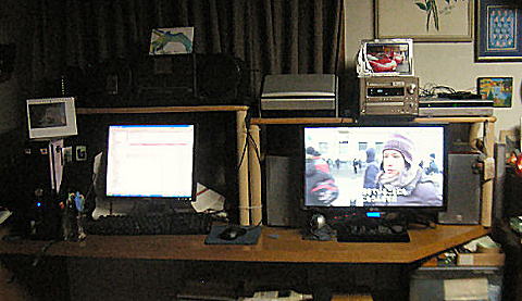 ◆青山貞一自宅の独立系メディア情報送受信システム 以下は青山貞一自宅の書斎における各種の通信システム群である。 メール、ホームページ、動画などはこの書斎から発信されている。 さらに書斎にはアマチュア無線の送受信システムもある。1.8KHz〜430MHzまでの電信、電話(SSB、AM,FMなど)の電波を発信できる。 以下の情報システム群の反対側に、動画編集システム群が設置されている。全体の面積はわずか6平米である。今や自宅のわずか2坪弱の場所からひとりでも全世界にあらゆる情報が発信できる! ![]() 撮影:青山貞一 Nikon CoolPix S8 書斎は寝室を兼ねている。2010年11月、深夜、青山はここから2階のトイレに行く途中、階段から落下し第二頸椎骨折の大事故を経験した。 ![]() 撮影:青山貞一 Nikon CoolPix S8 ◆青山貞一:頸椎骨折〜事故発生から事後検査まで〜前編 ◆青山貞一:頸椎骨折〜事故発生から事後検査まで〜後編 実は慈恵医科大学病院の個室にもPCを持ち込み連日、ブログやメールで状況を詳細に発信してきた。これは知人、友人の医者のあいだで大きな話題となった! ◆青山自宅 動画編集・映像受信システム 独立系メディア、E-wave Tokyoでは、昨年春以来、本格的な動画配信が行われている。下の写真の下段の液晶モニターは、動画編集システムの一部である。最新の動画編集システム(ハード、ソフト)が設置されている。 写真上段右の写真はハイビジョン受信AVシステムの液晶モニターである。 ![]() 撮影:青山貞一 Nikon CoolPix S8 以下は池田こみちさん自宅の情報システム。 ![]() 左はパソコン、右が地デジ・BSAVシステムである。 撮影:池田こみち Nikon CoolPix S10 以下は鷹取敦さんが自宅からUSTREAMで生送信している場面。 ![]() パワーポイントを使った講義! これは静止画ですが、実物は動画となります! おしまい! |