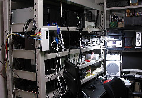 ●青山貞一自宅の情報システム 自宅からも数多くのブログ、ホームページ、動画を情報発信してきた! 以下は青山貞一の自宅(東京都品川区)3階にある青山の書斎・寝室の一部に設置されている情報システムである。 面積はわずか6平米。ここに立体設置している。