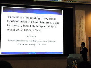 なお、Liu 武漢大学大学院教授は、セッションCでFeasibility of estimating Heavy Metal Contamination in Floodplain Soils Using Laboratory-based Hyperspectral data along Le An River in Chinaと題する研究発表を行った。
