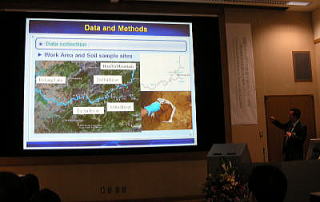 セッションAで発表する小堀東京都市大教授。タイトルは「Phenological Responses of Flora and Fauna to Recent Climate Change」