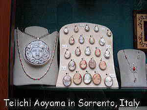 ソレントは、わずか人口1万7千のまちだが、伝統工芸品に関してはおそらくイタリア随一の感がする。それが単なるイタリアのどこにでもある観光地と一線を画すだけでなく、地域産業の中核をなしていると推察できる! ソレント市長自身の紹介によれば、ソレントの伝統工芸は「考古学セクションから象眼細工、カポディモンテの陶器、1800年代のナポリ派の絵画など幅広い所蔵品を誇ります。テラスからはナポリ湾を望むことができます。 ソレントの歴史的中心地にははめ木細工があります」*。市長の言葉にあるハメ木細工(日本で言う寄せ木細工か)こそ、ソレントならではの伝統工芸品である。 出典:*イタリア旅行情報サイトJAPAN-ITALY Travel市長が語る我が町観光自慢 そう、ソレントはさまざまな伝統工芸品のメッカなのだ。 バッグなどの革製品、とりわけ「はめ木細工」のメッカである。カソリックの総本山でメッカというのも辺だが、事実そうなのである。いずれも秀逸、卓越している!こと伝統工芸品に関して値段もリーズナブルだ。 実際、ソレント旧市街の狭い路地沿いにある小さな店をのぞくと、いかにも職人肌のおじいちゃんが「はめ木細工」や「カメオ」の工芸品を造っている。もちろん、大きなお土産屋にも、寄せ木細工の土産物や電動糸鋸がおいてある。 ソレントで最初にすばらしい「はめ木細工」を見つけたのは、サンタニェーロからソレントに散歩していた時のことだ。 海沿いの世界的に高級ホテル、エクセルシオールの壁沿いを歩いていると、ちょうどホテルの敷地が終わった次の壁に、埋め込まれたようなはめ木細工のウィンドーがあった。そこに下の写真にある2匹の猫のはめ木細工があったのである。なんともかわいらしい寄せ木細工だ。 13ユーロは安い!と買おうとしたが、店が休んでいて買えなかった。なんとも心残りである。 ![]() ソレントで最初に出会ったかわいらしいはめ木細工。 よく見ると、はめ木部分がよく分かる。 旧市街は迷路のようになっている。それぞれの路地からさらに小さな猫道のような裏路地が展開している。坂の町なので地形と相まって歩きながらウィンドーを見るだけでも楽しい。 ![]() 伝統工芸の店が並ぶソレント旧市街の路地にて、筆者 ソレントの寄せ木細工については後で触れるとして、ソレントの伝統工芸をざっと見てみよう。まず、手刺繍の工芸品(刺繍に手織りはないので手刺繍に)、かわいい小物入れ、風呂敷、ネクタイ、ハンカチ、果ては女性用下着まで多種多彩だ。 入り口でウインドーを見ていると、店のおじいちゃんがニコッと笑らう。けっして近寄ってどうですか?などとは言わないところがしおらしい。ヴェネツィアにも似たような伝統工芸、たとえばガラス細工(ベニスはその道で超有名)がある。ベニスの場合、結構、客引き的な店が多かったが、ソレントではそれがまったくない。 ![]() 刺繍細工の店 ![]() これも刺繍細工の店 次はカメオだ。カメオは、瑪瑙、大理石、貝殻などに浮き彫りを施した装飾品だ。カメオは古代より装飾品として愛され、古くはローマ時代のものも発掘されているという。おそらくソレントのカメオ細工もローマ時代からつづいているのだろう。 近年ではイタリアで工芸品として貝殻に彫り出したシェルカメオが、装飾品として珍重される。溶岩に掘り出したラバーカメオより、ストーンカメオに高価なものが多い。カメオに彫られた人物像をさらにダイヤモンド、ルビーなどで装飾したものはカメオ・アビレと呼ばれ珍品となっている。 ![]() これはカメオ細工の店 ![]() これもカメオ細工の店 ソレントの地にもヴェネツィアン・ガラス細工がおいてあった。下の写真はベニスのムラーノ(Murano)の伝統工芸品、ムラーノ・ガラス細工(Murano Glass)である。ペンダント、ブローチ、イヤリングなど。どれも色がすばらしい。 ![]() ムラーノのガラス細工 次は石けん細工だ。下の写真にあるデッサンは、いずれも石けんでつくったものだ。ちょっと調べるとイタリアは石けん細工で結構有名なよう。実際、アマルフィの小さな店でも石けん細工を売っていた。単に生活必需品としてだけでなく、装飾品としても石けんを売っている。下の写真の石けんは見るだけでも楽しい。 ![]() これは何と石けん(ソープ)でつくったいろいろなデザインだ! イタリアと言えばアパレルと皮革細工。もちろんソレントにも沢山のアパレルと皮革製品が所狭しと店を並べているが、なんと言ってもすばらしいのは、店構えというか小さなお店のデザインと色合いだ。旧市街の中世からの古い建築物を巧みに利用してウィンドーを展開している。 ![]() もちろんアパレルの店もたくさんある。どれもこれも旧市街にあか抜けたデザインのウィンドーを競っていた! ![]() これは革製品 ![]() これは新市街のウィンドー。こでもデザインはあか抜けている ところで、ソレントの伝統工芸であるはめ木細工は、南イタリア・カンパニア州の伝統工芸品の中 でも代表