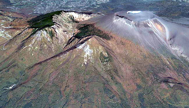 | グーグルアースで3次元展開した浅間山の火口部分 作成:青山貞一 | |||