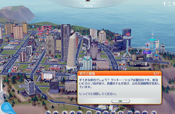 シムシティ 2013年版は、基本的に2つの遊ぶ方がある。ひとつはマルチプレイ(オンライン)、もうひとつはシングルプレイ(オフラインシングルプレイ)である。マルチプレイは、全世界のプレイヤーとリアルタイムでつながりながらのプレイとなり、プレイ結果は、すべてサーバーのハードディスクに保存される。一方、シングルプレイは、自分一人のプレイである。オフラインの場合には自分のパソコンにデータが保存できる。 実際にやってみて分かるのだが、マルチプレイであるが故に、自分のまちを超えた情報、資金、資源などのやりとりで問題が解決することもある。ただ、基本はシングルプレイであることは言うまでも無い。 マルチプレイでは、自分の成果を世界中のプレイヤ−(市長)と比べたり、項目別の世界ランキングで順位を競うことも出来る。いきなり世界ではなく自分が参加しているサーバーの地区別のランキングである。支持率、人口、財源、犯罪率、環境対策、健康、教育などさまざまな部門がある。 以下はシムシティ最新版(2013)の開発者によるシムシティの魅力です。シムシティは2013年1月に発売されて以来、さまざまな改良、拡充が行われており、世界中で楽しまれているシミュレーションゲームである。 以下はEA社によるシムシティの紹介。 シムシティ ゲーム紹介シムシティとは?新しい「シムシティ」のシミュレーションはかつてない程、奥深くなりました。 模型のような世界と詳細なシミュレーションにより、「シムシティ」はかつてないほど反応が良く、個々のシムまでシミュレートされるゲームになりました。 このゲームは同時に、最も拡張性が高い都市シミュレーションです。 地域を制御し、真のマルチシティスケールを実現しました。 最大16都市で同時に遊べ、それぞれ異なる街に特化できます。 史上初めてマルチプレイヤーに対応し、新たな遊び方が加わりました。 あなたの決断は都市にも地域にも影響します。友達と協力、競争して実績を達成し、新しい楽しみ方でプレイしましょう。 最後に、「シムシティ」はライブサービスとして、新しいチャレンジから新要素、コンテンツまで、リアルタイムにアップデートのシミュレートを行います。 奥深いシミュレーション新しいGlassBoxエンジンにより、都市全体のシステムから個々のシムまで、見えるもの全てがシミュレートされます。 行動の結果をすぐに確認して、システムの状態をチェックしましょう。 個々のシムをクリックすると、現在の行動や所得、満足度が表示され、あなたの行動のインパクトが分かります。 電力、税率、汚染、教育、失業などをコントロールしましょう! 新しいデータ可視化ツールにより、プレイヤーは重要な情報へ簡単にアクセスできるようになりました。 電力レイヤーをクリックすると、都市の電力供給状態を示すスナップショットが表示されます。 もしくは消防署をカスタマイズして派遣タワーを追加し、火災や緊急事態へ素早く対応できるようにしましょう。 街の方向性都市計画の戦略を選択して、自分好みの産業を発展させましょう。 知的なシムを求めるなら、図書館、コミュニティ・カレッジ、大学で溢れるカレッジタウンを目指せます。 カジノ、電子機器、石炭、貿易などの大事業に特化すれば、街は財政的に豊かになります。 こうした特化にはそれぞれメリットもありますが、悪影響も存在します。 教育を受けたシムは地域に貢献する技術をアンロックしてくれる一方で、大規模な大学は高い維持費がかかります。 カジノは観光客を呼び込み、シムオリオンを稼げますが、望まない犯罪も増加します。 マルチプレイヤーあなたが下す決断は、都市だけでなく地域にもインパクトを与えるようになりました。 良き隣人として消防や警察を他の都市に提供することも、工業に特化して汚染を生み出し、近隣都市で病気が蔓延する姿を眺めることもできます。 友達と協力、競争して偉業を生み出すことも、ランキングのトップに立って実績を獲得することもあります。 ライブサービスとして、新しいチャレンジから新要素、コンテンツまで、ゲームはリアルタイムにシミュレートを行います。 出典:EA Japan下はシムシティでまちをつくるイメージ、日本語スーパーインポーズ入り動画だ。 つづく |