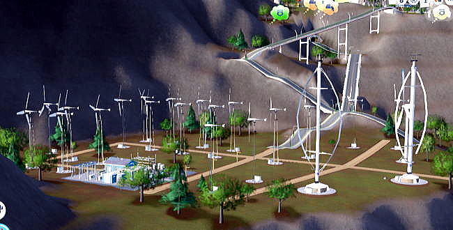 ![]() ◆1ヶ月間、シムシティを試行した感想! シムシティをはじめてから1ヶ月が経過した。この間、東欧、北米西部、大洋州、オセアニア、欧州などのクラウド・サーバーにアクセスし、世界の15カ所でまちづくりに挑戦してきた。 当初、ほとんど右も左も分からずにやっていたシムシティであるが、分かれば分かるほど奥が深く実社会との関連でいろいろ考えさせられるものであることが分かった。 さらにシミュレーションゲームとしても、マニュアル、ガイドに書かれていない隠れ技、裏技などノウハウ的なものも多数ある。さらにオプションの設定がもつ意味も次第に分かってきた。 わずか、5000円ほどのソフトで、これほど楽しめるとは思わなかった。またソフトを製作したひとたちは、相当、都市計画だけでなく環境政策、エネルギー政策、交通政策、住宅政策、財政などに詳しい本当のまちづくりプランナーではないかと思える。 そんなこともあり、シムシテイでは、ただ単にゲームを楽しむというだけで無く、環境政策、エネルギー政策、産業政策、土地利用政策、交通政策、住宅政策、公害対策、医療政策、警備対策などをまちづくりのなかで同時に考慮することの重要性、個別政策だけでなく都市経営全体のあり方を学ばなければ、都市経営などできないと思うに至った。 私自身、3年間、長野県知事の政策顧問として実際に県レベルであるがまちづくりに関与してきた。その実務経験との関連においても、このような本格的なシミュレーターを全国各地の知事や市町村長に使ってもらいたいと本気で思う。 もちろん、日本のように国の税源、財源、権限が強く、自治体とは名ばかりの国とは異なり、シムシティでは本来の意味での自治体としてのまちづくりが問われる。しかも、絶大の権限を持つミニ大統領としての市長の理念と方法がまちの存亡を左右するのである。 ◆再生可能エネルギーによるまちづくりの社会実験! この号では、風力、太陽光、波力など再生可能エネルギーを有効に活用したまちづくりについて実際にシムシティで試みた経験をもとに報告したい。 シムシティ2013版は、人口規模で言うと1万人〜20万人程度のまちづくりが課題となる。となれば、原発はもとより石炭、石油などの火力発電をいっさい使わず、15万人程度の人口規模を持つ自治体の電力需要をすべて再生可能エネルギーでまかなうことが可能なはずである。 もちろん、広大な土地と資金があれば、風力発電、太陽光発電の組み合わせで自律的なまちづくりが可能である。しかし、シムシティ2013では、おそらく東京都新宿区ほどの面積もない狭い土地でまちづくりを行うことが義務づけられている。したがって、仮にいくら資金があったとしても、この目的を達成するのは容易ではない。 しかし、この1ヶ月の試行錯誤で、1万人、5万人そして10万人規模はもちろんのこと、15万人の自治体で全面的に再生可能エネルギーだけで電力をまかなうことに成功した。これにより化石燃料価格の上昇が都市経営を圧迫することがなく、また原発事故を憂慮することがないまちの経営が可能となっている! ![]() 高効率、高性能のメガソーラーシステム ![]() さまざまな風力発電を組み合わせたウィンドファーム ◆シムシティにおける発電、送電、変電について シムシティでは、ライフライン系インフラ、すなわち電気・電力、上水、下水などは、すべて道路、橋梁、トンネルなどが同時に送電線、送電網あるいは上水道、下水道となっている。道路には砂利道から高速道路まで多くの種類があるが、いずれも送電線や上水道、下水道をを兼ねている。 したがって、道路のあるところであれば送電線、送電網、いわゆるグリッドが供給されているものとみなしてよい。変電設備は、風力発電から原子力発電までそれぞれの発電システムに付随している。 下はシムシティにおける電力グリッドの例である。黄色い線が送電線、黄色の円の大きさが電力使用量を示している。 ![]() シムシティにおける電力グリッド したがって、日本のように送電線がないので風力発電ファームが設置できない、さらに設置されていても送電線の容量が小さいので設置できないということはない。 一方、コストについては、建設コストに加え維持管理のためのコストがあるが、電気料金は総じて住宅、商業・業務、工業の施設に関連する税金(に類するもの)として徴収されており、明示的には存在しない。 さらに列車(電車)や路面電車などの電気系交通機関が使用する電気・電力はそれぞれの維持管理費に含まれており、やはり明示的に電気料金としては徴収されていない。 ただし、シムシティでは、電気、電力は重要なインフラ、ライフラインとなっており、一定時間以上停電が続くような場合には、市民や企業から苦情がでるだけでなく、市民や企業が他のまちに移住し、住宅やビルは廃墟となり、まちは税収がその分減り、経営破たんの原因ともなる。 ◆シムシティ