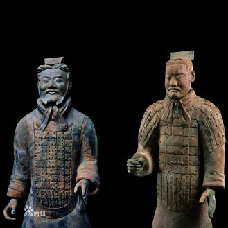 | 総合メニュー 始皇帝博物院(百度百科1) 始皇帝博物院(百度百科2) 始皇帝博物院(百度百科3) 始皇帝博物院(百度百科4) 始皇帝博物院(百度百科5) 始皇帝博物院(百度百科6) 始皇帝博物院(百度百科7) 始皇帝博物院(百度百科8) 始皇帝博物院(百度百科9) 始皇帝博物院(百度百科10) 始皇帝博物院(百度百科11) 始皇帝博物院(百度百科12) 始皇帝博物院(百度百科13) 始皇帝博物院(百度百科14) 本稿の解説文は、現地調査や現地入手資料、パンフなどに基づく解説に加え、百度百科中国版から日本への翻訳、Wikipedia 日本語版を使用しています。また写真は現地撮影以外に百度百科、Wikimedlia Commons、さらに地図はグーグルマップ、グーグルストリートビュー、百度地図などを使用しています。その他の引用に際しては、その都度引用名を記しています 次は秦始皇帝陵博物院の展示物を紹介する百度百科5です。 ◆秦始皇帝陵博物院 百度百科5 【8】秦時代の俑坑歩道の煉瓦 ![]() 出典:中国百度百科 秦始皇帝陵博物院 秦時代の陶器は秦の兵馬俑一号坑から出土しています。歩道に煉瓦を敷き詰めたことにより、秦の俑坑の底の部分には煉瓦の舗道がありました。煉瓦は青灰色で中には橙や紅色もありました。表面には細かく縄紋が施され、質的には堅固な物でした。煉瓦の上には、「宮水」、「左司空」などの文字が刻まれています。 【9】秦時代の下級軍吏俑 ![]() 出典:中国百度百科 秦始皇帝陵博物院 秦時代の陶器で、高さは189~191cm、秦の兵馬俑一号坑から出土しました。下級軍吏俑は、頭には単衣の長い冠を付けています。鎧甲を着けていないものは軽装の歩兵、鎧甲を着けたのは重装の歩兵です。 ただし、甲の上着の上には彩色の花模様が描かれ、彼らは手に剣を握り、もう一方の手には矛や戈などの長い兵器を持っています。秦の始皇帝陵博物院に収蔵されています。 注)軍吏とは コトバンクより ◎①軍隊の経理行政事務を司る役人。部隊の文官,軍隊の行政官 ②陸軍主計の旧称。陸軍の会計経理事務を担当した。 【10】秦時代の中級軍吏俑の1 ![]() 出典:中国百度百科 秦始皇帝陵博物院 秦時代の陶器で、高さは189cm、秦の兵馬俑一号坑から出土しました。右手には弓を握り、左手には剣を握っています。秦の兵馬俑一号坑から出土した中級軍吏俑の頭には袷(二重)の長冠をつけています。手には剣を握り、ある者は、高級軍吏俑のすぐ傍らに副手として立ち、またある者は兵隊の列にあって隊長のように立っています。秦の始皇帝陵博物院に収蔵されています。 【11】秦時代の中級軍吏俑の2 ![]() 出典:中国百度百科 秦始皇帝陵博物院 秦時代の陶器で、高さは191cm、秦の兵馬俑一号坑から出土しました。右手は拳を握り、左腕は前に出して拳を握り、長い兵器を持っています。秦の兵馬俑一号坑から出土した中級軍吏の俑は、頭に袷の長冠をかぶり、手には剣を握り、高級軍吏俑の傍らに副手として寄り添い。兵隊の列の中で隊長のように立っています。秦の始皇帝陵博物院に収蔵されています。 秦始皇帝博物院(百度百科6)へつづく |