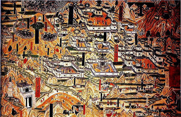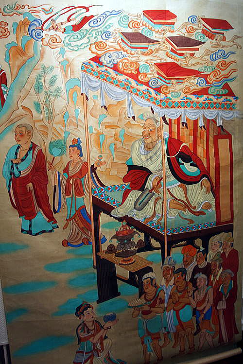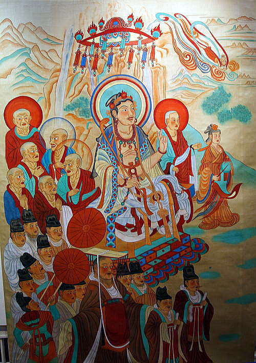 | 総合メニュー(西域) 莫高窟1 莫高窟2 視察1 視察2 展示1 展示2 展示3 展示4 展示5 展示6 展示7 展示8 展示9 窟(1-50) 窟51-100) 窟(101-200) 窟(201-300) 窟(301-400) 窟(401-600) 参考 石窟マップ 本稿の解説文は、現地調査や現地入手資料、パンフなどに基づく解説に加え、百度百科中国版から日本への翻訳、Wikipedia 日本語版を使用しています。また写真は現地撮影以外に百度百科、Wikimedlia Commons、トリップアドバイザーさらに地図はグーグルマップ、グーグルストリートビュー、百度地図などを使用しています。その他の引用に際しては、その都度引用名を記しています ◆莫高窟(Mogao Caves, 中国敦煌市) 次は莫高窟 展示5です。 ![]() Bởi White whirlwind – Tác phẩm do chính người tải lên tạo ra, CC0, Liên kết Source:Wikimedia Commons 以下は莫高窟内の壁画、仏像です。いずれもWikimedia Commonosで公開されているものです。 ![]() Vimalakirti 維摩居士(ゆいまこじ、ヴィマラ・キールティ)、音写:毘摩羅詰、維摩詰、漢 訳:浄名(旧訳)、無垢称(新訳)、生没年未詳)は、古代インドの商人で、釈 迦の在家の弟子(居士とは在家の弟子のこと)。 Source:Wikimedia Commons By File created by user "pandahermit." Artwork created by anonymous ancient source. - https://www.flickr.com/photos/pandahermit/3667493675/in/photostream/, Public Domain, Link ![]() Manjusri 文殊 Source:Wikimedia Commons File created by user "pandahermit." Artwork created by anonymous ancient source. - https://www.flickr.com/photos/pandahermit/3668300804/in/photostream/,公有领域,链接 ![]() 仏教の洞窟芸術、楽団が演奏している間、踊り子が回転する。 洞窟46左の内壁、2番目のパネル。 洞窟112とも呼ばれる Source:Wikimedia Commons By unknown painter from Mid-Tang Dynasty(A.D.762-827) - https://www.askideas.com/architecture-inside-the-mogao-caves-china/, Public Domain, Link ![]() ソグディアナの人々によってかつて崇拝された2つのゾロアスターの神を 描いたソグディアナの神々 Source:Wikimedia Commons By Unknown author - New version: https://www.edb.gov.hk/attachment/en/curriculum-development/kla/pshe/belt-and-road-initiative/Ancient_Silk_Road_Nomadic_Ethnic_Group.pdfOld version: http://s3.sinaimg.cn/large/4d40cc3dh9fe7648026a2&690, Public Domain, Link 注1) ソグド人。ソグドともいう。 中央アジアのサマルカンドなどを含むザラフシャン川流域の古代名。ソグド人が住み,土地が肥沃で物産が豊富なため,商業活動が大いに栄え,遠くはギリシア人にまでその名が伝わり,さらに中国の史書にも1世紀から粟特 (粟弋) として記されている。しかし一方で周辺諸勢力に圧迫され,政治的には外族の支配を受けることが多かった。 注2)ソグド人 中央アジアのタジキスタンとウズベキスタンにまたがるソグディアナ地方のイラン系住民。古代ギリシャのポリス(都市国家)のようなオアシス都市を形成し、紀元前4世紀ごろからシルクロードの隊商の民として活躍。独自のソグド語を持ち、ゾロアスター教を信仰した。その後はイスラム化が進み、10世紀にはサマルカンドでソグド語が消えている。 ![]() 北京、中国の国立美術館における敦煌の莫高窟から出土した作品の展示。 Source:Wikimedia Commons By gongfu_king - DSC_4000, CC BY-SA 2.0, Link ![]() Mount Wutai monasteries 五台山修道院 Source:Wikimedia Commons Chinese artist(s) from the 10th century - Scanned from Patricia Ebrey's Cambridge Illustrated History of China (1999), パブリック・ドメイン, リンクによる 注)五台山(ごだいさん) 五台山は中国山西省東北部の五台県にある古くからの霊山です。標高3,058m。仏教では、文殊菩薩の聖地として、古くから信仰を集めています。旧字表記では五臺山。別名は清涼山。2009年にユネスコの世界遺産(文化遺産)に登録されました。 ![]() マラの誘惑を描いた壁画。 10インチ 敦煌市 莫高窟 Source:Wikimedia Commons By anonymous - Transferred from ru.wikipedia, Public Domain, Link 展示4へつづく |