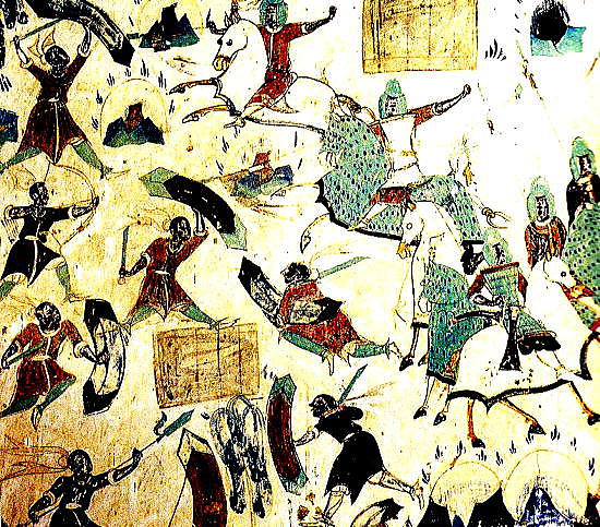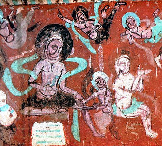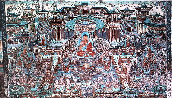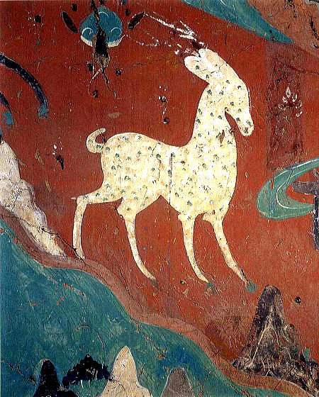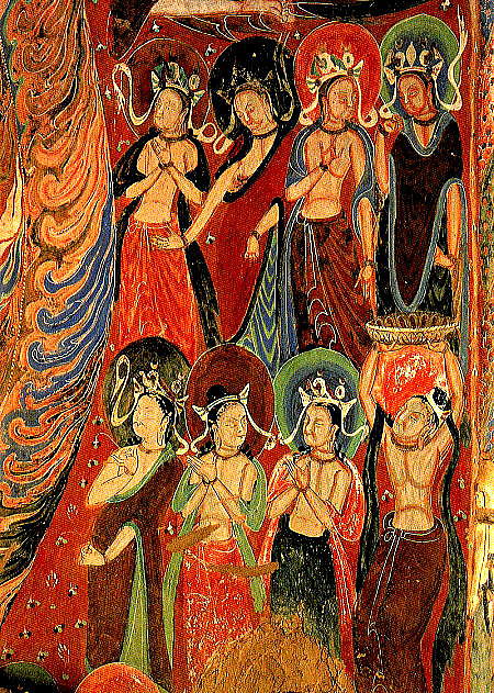 | 総合メニュー(西域) 窟(1-50) 窟51-100) 窟(101-200) 窟(201-300) 窟(301-401) 窟(401-600) 参考 石窟マップ 本稿の解説文は、現地調査や現地入手資料、パンフなどに基づく解説に加え、百度百科中国版から日本への翻訳、Wikipedia 日本語版を使用しています。また写真は現地撮影以外に百度百科、Wikimedlia Commons、トリップアドバイザーさらに地図はグーグルマップ、グーグルストリートビュー、百度地図などを使用しています。その他の引用に際しては、その都度引用名を記しています ◆莫高窟201-300 次は莫高窟201-300です。 ![]() Source:Wikimedia Commons ![]() 観無量寿経壁画 敦煌莫高窟第217窟 By 敦煌莫高窟第217窟, Public Domain, Link Source:Wikimedia Commons 注)『観無量寿経』(かんむりょうじゅきょう)Wikipediより 大乗仏教の経典の一つ。別名『観無量寿仏経』、『無量寿仏観経』、『無量寿観経』 ともいい、『観経』と略称される。サンスクリット原典、 チベット語訳が発見されて いないため中国撰述説もある。 注)観無量寿経 無盡燈(浄土真宗本願寺派法性山善徳寺)Webサイトより 観無量寿経(観経)は、「いづれの行もおよびがたき」罪悪の凡夫でも、南無阿弥陀仏の お念仏を称えることによって救われ、極楽に往生できることを説く経典です。その経典 の序分には、「王舎城の悲劇」と称される、親子の間で繰り広げられた悲劇の物語が説 かれています。 この経典のサンスクリット原典は伝えられておらず、畺良耶舎(きょ うりょうやしゃ:西暦424-453年)という西域の人による漢訳『仏説観無量寿経』のみが 現存しています。 ![]() 太宗皇帝 作者不明-甘肅省敦煌壁画 第220窟 By Unknown author - Mural in Cave 220, Dunhuang, Gansu Province, Public Domain, Link Source:Wikimedia Commons ![]() 縁取りのある弦楽器(琵琶)奏者(月琴?) 莫高窟第220窟北壁, 唐王朝(618-907)、作者不明 Unknown artist from Tang Dynasty era, 618-907 A.D. - Mogao caves, cave 220.https://xw.qq.com/partner/liebao/20180313G11XMV/CUL20180313G11XMV00?s=cm, パブリック・ドメイン, リンクによる Source:Wikimedia Commons ![]() 莫高窟第220窟経北壁 薬師経変 出典:中国国際 CRI Online、国宝は語るⅢ~(10)敦煌経変画 ![]() 莫高窟第220窟経北壁 薬師経変 出典:中国国際 CRI Online、国宝は語るⅢ~(10)敦煌経変画 ![]() 敦煌莫高窟 第249窟 阿修羅 Source:Wikimedia Commons ![]() 後で上塗りが部分的に削除された後に明らかになった初期の壁画。 酸化から保護され た顔料を含む人物の肌の色調は、後の右側の絵の仏の暗めの色調とは対照的です。 莫高窟第253窟、北魏時代。 不明 author - Dunhuang Mogao Caves, scanned from Whitfield, Roderick, Susan Whitfield, and Neville Agnew. "Cave Temples of Dunhuang: Art and History on the Silk Road" (2000). The British Library. ISBN 0-7123-4697-x Invalid ISBN page 112, パブリック・ドメイン, リンクによる Source:Wikimedia Commons ![]() 虎ジャータカ(仏法説話のひとつ)を描いた壁画。敦煌莫高窟第254窟。 作者不明、北魏時代、 By Anonymous artists of the Northern Wei period; I created the file - Wall Paintings at Dunhuang, Public Domain, Link Source:Wikimedia Commons 注)ジャータカ(Jataka) 仏教説話集。 jātakaとは「生れたものに関する」の意で「本生話」「本生譚」とも 訳す。インドに古くからある業報輪廻思想を仏陀にあてはめたもの。現世で悟る以前, 仏陀が六道で菩薩としてさまざまな姿,形をとって善行を行う様を述べる。 (1) 現在 世の物語,(2) 過去世の物語,(3) 過去と現在のつながりを説く3部門から成る。成立 年代は明確ではないが,前2世紀にはこれを題材にした彫刻が出現している。説話数は 547 (パーリ語聖典) 。早くから各国語に翻訳されて西方諸国に広まり,『千一夜物語』 『イソップ物語』『グリム童話』などに影響を与え,また日本の『今昔物語集』にも 類話がみられる。 ![]() 九色の鹿の壁画の部分。敦煌莫高窟第257窟 不明 author - http://www.sohu.com/a/331951544_120259260, パブリック・ドメイン, リンクによる Source:Wikimedia Commons ![]() 莫高窟第275洞窟の壁画 パブリック・ドメイン, リンク Source:Wikimedia Commons ![]() 第272窟(5世紀) 天井 出典:NHK BS3 もうひとつのシルクロード ![]() 第272窟(5世紀) 天井 出典:NHK BS3 もうひとつのシルクロード ![]() 最古の洞窟の1つである北部梁(397-439)の第275洞窟の中の弥勒仏像。 3枚の円盤状の王冠と交差した足首の像は、クシャーナ王朝の芸術からの 影響を示している。 By Bairuilong - Own work, CC BY-SA 4.0, Link Source:Wikimedia Commons ![]() 第275窟の弥勒菩薩像、北涼時代(397-439)の窟で最も古い窟の一つ。3枚の円盤を頭に 載せ、かかとを交差させた像はクシャーナ朝の芸術の影響を受けています。 Source:Wikimedia Commons ![]() 第275窟(5世紀) 交脚弥勒菩薩 出典:NHK BS3 もうひとつのシルクロード ![]() 第275窟(5世紀) 交脚弥勒菩薩 出典:NHK BS3 もうひとつのシルクロード ![]() 第275窟(5世紀) 交脚弥勒菩薩 出典:NHK BS3 もうひとつのシルクロード ![]() 第275窟(5世紀) 交脚弥勒菩薩 出典:NHK BS3 もうひとつのシルクロード ![]() 第275窟(5世紀) 交脚弥勒菩薩 出典:NHK BS3 もうひとつのシルクロード ![]() 飛ぶアプサラ(天女)。 285窟、538-539 AD、西魏時代 不明 author - Dunhuang Mogao C