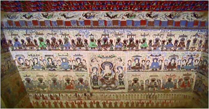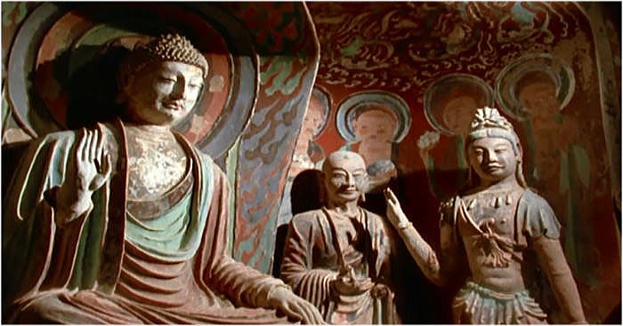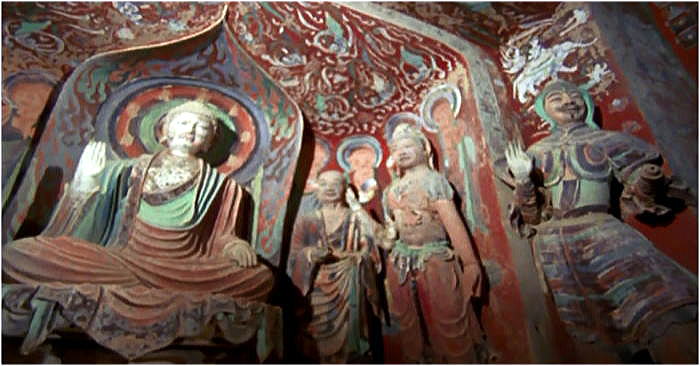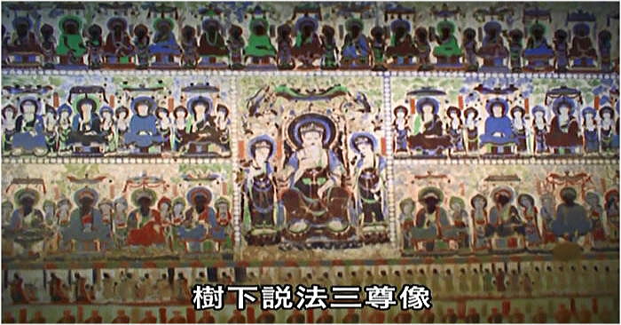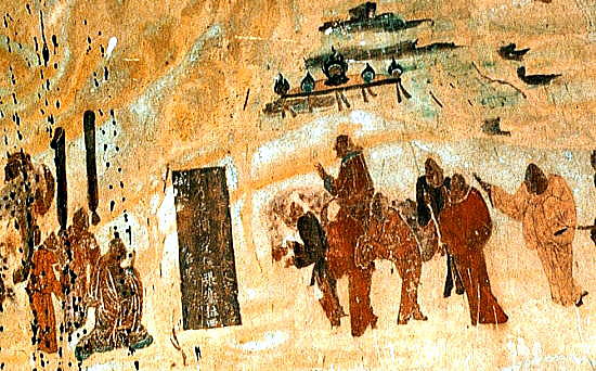 | 総合メニュー(西域) 窟(1-50) 窟51-100) 窟(101-200) 窟(201-300) 窟(301-400) 窟(401-600) 参考 石窟マップ 本稿の解説文は、現地調査や現地入手資料、パンフなどに基づく解説に加え、百度百科中国版から日本への翻訳、Wikipedia 日本語版を使用しています。また写真は現地撮影以外に百度百科、Wikimedlia Commons、トリップアドバイザーさらに地図はグーグルマップ、グーグルストリートビュー、百度地図などを使用しています。その他の引用に際しては、その都度引用名を記しています ◆莫高窟301-400 次は莫高窟301-400です。 ![]() Source:Wikimedia Commons ![]() 敦煌莫高窟壁画。この露出した壁画は現代の入り口の近くにあり、第305窟と第306窟の 間に位置しています。かつて洞窟の後壁だったものに描かれ居ますが、何世紀もの間に もともとの洞窟の前の部分は崩れてなくなり、中が露出してしまいました。崖は崩れや すく非常に内部は傷つきやすいことが、この現場を保護する者にとって大きな課題です。 壁画に描かれている守護神は手に長い剣を持ち、奇妙なことに、彼の左手にはもう一つ 親指があるように見えます。 By G41rn8 - Own work, CC BY-SA 4.0, Link Source:Wikimedia Commons ![]() 第322窟 初唐 出典:NHK BS3 もうひとつのシルクロード ![]() 第322窟 初唐 出典:NHK BS3 もうひとつのシルクロード ![]() 第322窟 初唐 出典:NHK BS3 もうひとつのシルクロード ![]() 第322窟 初唐 出典:NHK BS3 もうひとつのシルクロード ![]() 張騫(ちょうけん)の西へ旅。 洞窟323から出土した壁画の詳細、紀元618-712。 不明 author - Reproduction in Roderick Whitfield, Susan Whitfield, Neville Agnew, and Lois Conner, Cave Temples of Mogao: Art and History on the Silk Road. Getty Conservation Institute and the J. Paul Getty Museum, 2000. ISBN 978-0-89236-585-2, パブリック・ドメイン, リンクによる Source:Wikimedia Commons ![]() 甘粛省敦煌近くの莫高窟に残る8世紀の壁画。仏像を礼拝する漢の皇帝武帝を描いたも の。遊牧民に対する攻撃の際に偉大な漢将軍によって紀元前120年にもたらされた黄金 の男性を崇拝する漢王朝武帝に添付された文章による説明は次のように記載しています。 「漢の武帝はその軍隊に匈奴と戦うように命じ、二つの大きな金の像を持ち帰り甘泉宮 て展示していつも礼拝してた。」と。 この壁画は莫高窟第323窟にあります。これは張騫の西部への出発を示す壁画と関係 があると思われます。(「張騫の旅」の画像)二つの壁画は左右に並べられています。 まさに伝説と歴史的事実を組み合わせたもので、漢の皇帝である武帝は決して仏陀を崇 拝して居ませんでした。 By Unknown author - Reproduction in Roderick Whitfield, Susan Whitfield, Neville Agnew, and Lois Conner, Cave Temples of Mogao: Art and History on the Silk Road. Getty Conservation Institute and the J. Paul Getty Museum, 2000: p.19. ISBN 978-0-89236-585-2, Public Domain, Link Source:Wikimedia Commons ![]() 第322窟 出典:NHK BS3 もうひとつのシルクロード ![]() 第390窟 出典:NHK BS3 もうひとつのシルクロード ![]() 第390窟 出典:NHK BS3 もうひとつのシルクロード ![]() 第390窟 出典:NHK BS3 もうひとつのシルクロード ![]() 七尊像 第390窟 出典:NHK BS3 もうひとつのシルクロード 窟(401-600)へつづく 総合メニュー(西域) |