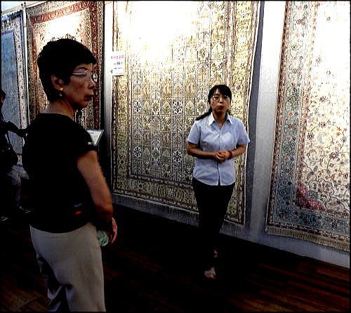 | 総合メニュー 陝西省美術博物館(百度百科) 展示1 西安のシルク 本稿の解説文は、現地調査や現地入手資料、パンフなどに基づく解説に加え、百度百科中国版から日本への翻訳、Wikipedia 日本語版を使用しています。また写真は現地撮影以外に百度百科、Wikimedlia Commons、トリップアドバイザーさらに地図はグーグルマップ、グーグルストリートビュー、百度地図などを使用しています。その他の引用に際しては、その都度引用名を記しています 次は中国西安市(長安市)のシルク織物の展示販売店です。 ◆西安のシルク(Xi'an 中国西安市) せっかくなので、シルクロードの起点、西安のシルク織物の本場に出かけてみました。ここは中国の省立の絹織物研究所に併設された展示即売所です。 青山はシルクについての知見はありませんが、池田は全国各地、とくに明治、大正、昭和初期に養蚕が盛んだった埼玉の秩父、群馬の桐生、赤岩、長野の上田などにも足を運び現場で見ています。また織物の質と価格については、トルコ、モロッコ、ウズベキスタンなどでも見てきました。 ![]() 撮影:青山貞一 Nikon Coolpix S9900 ![]() 撮影:青山貞一 Nikon Coolpix S9900 以下は池田のコメントです。 西安で訪れた絹製品の展示即売所は、次第に少なくなる絹織物の技術者を育成するため、国が補助して製品価格を安くして、国内外に普及させようとしているとのことで、高価な緞通絨毯やペルシャ絨毯や衣類などシルク製品が比較的リーズナブルな価格で沢山並べられていました。 ウール製の製品もありましたが、やはり絹製がメインで、日本で買うよりはかなり低価格でした。ここでは、係員が、シルクの絨毯の織り方などを実際の機織を用いて説明して下さいます。細かい柄は一日に1cmも進まないと言うほどで、今では技術者が少なくなり技術の継承が大きな問題となっているとのことで、これは日本でも同じ状況です。 トルコや中東などでつくられているペルシャ絨毯の原料(絹糸)も中国が原産で輸出されているとのことでした。まさに、シルクロードの出発点です。 素敵な柄のシルクの絨毯にも魅力がありましたが、なにぶん自宅は、畳の生活で絨毯を敷くところがありませんので、奥にあった小物の販売コーナーで、お土産にシルクのスカーフをいくつか購入しました。地方の職人さんから直接送られてきた製品で、細い糸で織り上げられているので柔らかく色合いも綺麗でした。 中国の絹織物は、日本と同じように、地域によって異なり、特徴のある織り方、柄がありますが、トルファンでは、秩父銘仙のような平織りの絣柄の織物がとても美しく衣類だけでなく、壁掛けやテーブルセンターとして活用されていました。 今回は時間がなく、シルクをじっくり見る時間がありませんでしたので、また、次の機会には日本に伝わっている様々な織物を見てみたいと思います。 着物や帯だけでなく、茶道で用いる絹織物は袱紗はもとより、茶入れなどの仕覆、掛け軸などにも様々な絹織物が使われており、正倉院御物の写しなどとして珍重されます。これらの織物はいずれも、漢や唐の時代から中国で織り上げられた錦、金襴、緞子、紗、羅などであり、道具や使う人の格に応じて柄も織り方も様々に選ばれます。そうした日本に伝わる絹織物の原点にちょっとでも触れることができたことは大変貴重なことでした。 以下はトルファンで視察した際の写真です。 ![]() 撮影:池田こみち Nikon Coolpix S9900 ![]() 撮影:池田こみち Nikon Coolpix S9900 ![]() 撮影:池田こみち Nikon Coolpix S9900 ![]() 撮影:青山貞一 Nikon Coolpix S9900 ![]() 撮影:青山貞一 Nikon Coolpix S9900 ![]() 撮影:青山貞一 Nikon Coolpix S9900 碑林博物館へつづく |