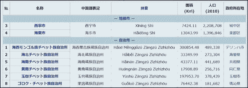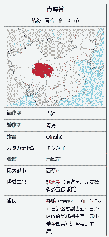 | 総合メニュー(西域) 青海省 青海湖1 青海湖2 西寧市 西寧市2 西寧市3 西寧市4 西寧主変寺院 本稿の解説文は、現地調査や現地入手資料、パンフなどに基づく解説に加え、百度百科中国版から日本への翻訳、Wikipedia 日本語版を使用しています。また写真は現地撮影以外に百度百科、Wikimedlia Commons、トリップアドバイザーさらに地図はグーグルマップ、グーグルストリートビュー、百度地図などを使用しています。その他の引用に際しては、その都度引用名を記しています 次は新疆ウイグル自治区と甘粛省の間にある青海省です。 ◆青海省(中国・青海省) ![]() ![]() Source:Wikipedia ![]() 省都 西寧市 Source: Wikimedia Commons Royonx - 投稿者自身による作品, CC0, リンクによる 青海省は、中華人民共和国西部に位置する省でしたす。省都は西寧市です。1928年に青海省成立。省名は、省内に国内最大の湖沼である青海湖(チベット名ツォティショギャルモ、モンゴル名フフノール)があることにちなんでいます。 概要 この省の領域の大部分は、チベット人自身によるチベットの地方区分でいう「アムド地方」に属し、アムド地方の西部から中央部を占めており、東南部に位置するキクド(ジェクンド、玉樹)一帯のみ、カム地方に属する。またモンゴル人は、この地やそのモンゴル系住人を「デート・モンゴル(高地モンゴル)と称する。2005年1月省長に就任した宋秀岩は中国で20年ぶりの女性省長である。 この省の領域を枠組みとする地方行政単位の成立は、雍正帝のチベット分割にさかのぼります。清朝の雍正帝は、1723年から1724年にかけて、当時この地方を含むチベット全土を支配していたオイラト系モンゴル人のグシ・ハン一族を征服、彼らの支配下にあった七十九族と呼ばれる諸部族を、タンラ山脈を境に南北に分割、青海四十族と西蔵の三十九族に二分しました。 清朝は青海モンゴルや四十族などの諸侯を、西寧から支配、この枠組みは中華民国にも引き継がれ、青海省の基礎となりました。中国の現行の行政区画としての西蔵(チベット)と青海は、直接にはこの分割を起源としたものといえます。 歴史 西寧市 古代の西戎の地で、漢代には姜族が占拠し、西羌(せいきょう)と呼ばれました。隋王朝は西海、河源などの郡を設置しましたが、吐谷渾(とよくこん)が勃興し、領域としました。 7世紀には吐蕃(とばん)のチベットと唐王朝の中国の抗争の舞台となり、8世紀に大部分がチベット領となりました。822年、チベットと中国の間で和平と国境を定めるための条約が締結され、青海湖の西南にある日月山が両国の国境と定められました。条約の文面はチベット語と中国語(漢文)の2ヶ国語で石碑に刻まれ、チベットの都ラサ、中国の都長安、日月山の3ヶ所に設置された。ラサに設置された石碑のみ、現在まで失われずに残り、「唐蕃会盟碑」として知られています。吐蕃の統治下で、この地に居住する諸種族の多くがチベット人としての自意識を持つようになって現在に至っています。 宋代(北宋・南宋)には吐蕃の末裔が樹立した青唐王国の拠点となりましたが、タングート系の西夏に併合されて滅亡しました。17世紀半ば、西モンゴルオイラト部のグシ・ハンが配下を引き連れてチベットの各地に移住し、チベットを征服した際には、この地が本拠地となりました。 現在この省の中央部から北西部にかけて居住している青海モンゴル族は、この時移住してきたグシ・ハンの配下の末裔です。18世紀、清朝の雍正帝はグシ・ハン一族の内紛に乗じて青海地方に侵攻(いわゆる「ロブサンダンジンの乱」)、グシ・ハンの子孫たちを屈服させ、一族がチベット各地に保有していた権限、権益をすべて接収、青海モンゴル族は盟旗制により再編、チベット人諸侯たちには各級の「土司職の称号を与え、所領を安堵する」という支配体制を築きました。 清末以来、ムスリム(イスラム教徒)の馬氏政権の支配下に置かれ、1928年、河西回廊の南部と会わせて「青海省」が設置されたのちも、遊牧地域では、従前とさほど変化のない社会構造が継続しました。1950年代半ば、中国人民政府による民主改革が行われたのを契機に大規模な抗中蜂起が勃発、チベット動乱の引き金となりました。 1958年以降、原爆、水爆の開発が同省内でおこなわれています。2010年4月13日には青海地震が起こっています。 地理 青蔵高原東北部に位置し、黄河、長江、メコン河の水源地帯となっています。省東北部に中国最大の内陸塩湖・青海湖があります。 西北部には乾燥したツァイダム盆地が広がっています。大陸性高原気候で一日の温度差が激しく、降水量は少なくなっています。北部から東部にかけて甘粛省、南東部は四川省、南部から西部にかけてチベット自治区、西北部は新疆ウイグル自治区と接しています。 行政区画 1724年、雍正のチベット分割の際に清朝がグシ・ハン一族より接収したチベット東部の最北部に「青海」地方が設けられました。その領域は西寧弁事大臣管轄下の青海蒙