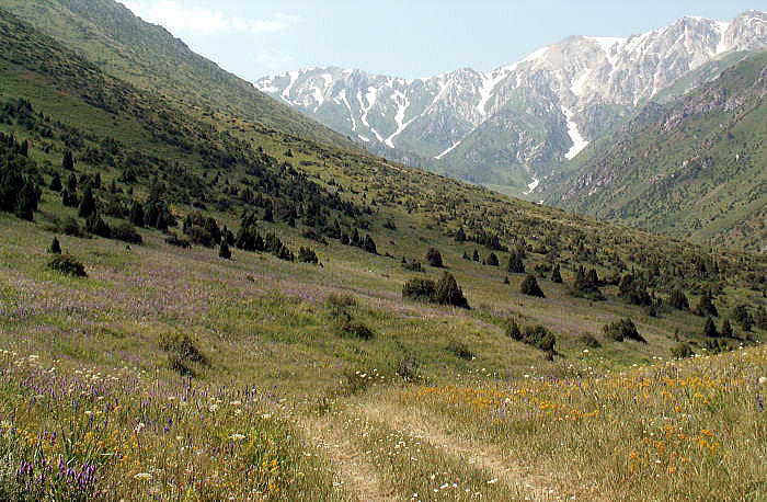 | 総合メニュー(西域) 南疆線 南疆線沿線風景 南疆線沿線駅 天山山脈 展示1 展示2 展示3 展示4 展示5 本稿の解説文は、現地調査や現地入手資料、パンフなどに基づく解説に加え、百度百科中国版から日本への翻訳、Wikipedia 日本語版を使用しています。また写真は現地撮影以外に百度百科、Wikimedlia Commons、トリップアドバイザーさらに地図はグーグルマップ、グーグルストリートビュー、百度地図などを使用しています。その他の引用に際しては、その都度引用名を記しています 次は新疆ウイグル自治区の天山山脈の展示1です。 ◆天山山脈展示1(新疆ウイグル自治区南部) ![]() 天山山脈中央の山々は中央アジアに位置しています。 このファイルの最高地点 は、中国、カザフスタン、キルギスの3か国の国境を通過します。この山脈の峡 谷には、河川と湖をもつ強力な氷河が動いています。この最も北の頂上は、7000 メートルを超える高さを誇ります。 ハン・テングリの頂上は7010メートル、お よびポベーダの7439メートルの頂上が位置しています。 Source:Wikimedia Commons By 韵升(Yunsheng) 白(Bai) - Flickr: Peak Pobeda,托木尔峰, CC BY 2.0, Link ![]() Yaks grazing on the Tian Shan, Xinjiang, China. 天山山脈で草を食むヤク、中国新疆ウイグル自治区 Source:Wikimedia Commons User:Doron - 投稿者自身による作品, CC 表示-継承 3.0, リンクによる ![]() アクス=ザバグリ自然保護区、柏槇属の低木林(ジュニペルススクラブ)が見ら れる。 カザフスタンのクシ-とウルケン-カイインディの間の高原。 Source:Wikimedia Commons By Tomiris - Own work, CC BY-SA 3.0, Link ![]() ビッグアルマトイ湖、2016年6月 Source:Wikimedia Commons Автор: МаратД - собственная работа, CC BY-SA 4.0, Ссылка ![]() 中国はこの山の反対側から数マイルのところ。 Source:Wikimedia Commons ![]() 天山山脈 出典:中国百度百科 ![]() 天山山脈 出典:中国百度百科 ![]() 天山山脈 出典:中国百度百科 ![]() 天山山脈 出典:中国百度百科 ![]() 天山山脈 出典:中国百度百科 展示2へつづく |