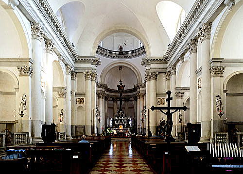 | <ヴェネツィア総合メニュー> <教会8> サン・ジョルジョ・マッジョーレ聖堂1 サン・ジョルジョ・マッジョーレ聖堂2 レデントーレ教会1 レデントーレ教会2 サン・クレメンテ島 本稿の解説文は、現地調査に基づく開設に加え、Veneziaイタリア語版を中心にVenice英語版からの翻訳及び日本語版を使用しています。また写真は現地撮影分以外にWikimedlia Commons、さらに地図はグーグルマップ、グーグルストリートビューを使用しています。その他の引用に際しては、その都度引用名をつけています。 ◆レデントーレ教会1(Il Redentore) 下はグーグルマップで見たレデントーレ教会の位置です。 ![]() 出典:グーグルマップ 下はグーグルマップで見たレデントーレ教会の外観です。 ![]() Church of the Most Holy Redeemer, Venice, Italia Source:Wikimedia Commons CC 表示-継承 3.0, リンクによる レデントーレ教会(Il Redentore)はヴェネツィア内のジュデッカ島にあるカトリックの教会です。 概要 レデントーレ教会は、ヴェネツィア共和国にも猛威を振るったペストの脅威(共和国の人口の25-30%に当たる約46,000人がペストにより死亡した)が、1576年に収束したことへの記念及び神への感謝を込め1577年より建設が始まり1599年に完成しました。 共和国の大評議会から任命されたアンドレーア・パッラーディオは、当初大評議会から正方形を基本とした教会の設計を依頼されていましたが、最終的に身廊の両サイドに礼拝堂を擁する形(十字架の形)で設計しました。 ジュデッカ運河に面した目立つ場所に建設された事から、パッラーディオの設計により教会正面はパンテオンを彷彿とさせるデザインや巨大な脚座を使用しています。また、かつて教会入口には15段の階段がありました。これはエルサレム神殿の階段を参考にし、またパッラーディオ自身の「昇る事は献身をもたらし、昇天は段階的なものである」という理念によるものです。 1577年5月3日にヴェネツィア共和国のカトリック大司教ジョヴァンニ・トレヴィサーノにより礎石が置かれ、1592年に完成・献上されました。また当時のローマ教皇グレゴリウス13世の急な要請により、教会はカプチン・フランシスコ修道会の傘下となり、托鉢僧の僧院としても使用されました。 かつて共和国の元首及び大評議会の議員は、毎年特別に作られた浮き橋を渡ってレデントーレ教会のミサに参加していました。その名残として現在でも毎年7月の第3日曜日にヴェネツィアの主要な祭の1つである「レデントーレ祭り」(en:Festa del Redentore)が行われており、前夜祭には大規模な花火が上がり、浮き橋にはレデントーレ教会に向かう行列が出来きます。 外観 ![]() Il Redentore and Canale della Giudecca. Source:Wikimedia Commons CC BY-SA 4.0, Link レデントーレ教会は、パッラーディオが設計した建造物の中で最高傑作と言われています。巨大な白いドームを擁し、教会正面は凱旋門を彷彿とさせるデザインとなっており、低く大きなペディメントを乗せた形となっています。 パッラーディオは幾何学を応用したデザインを得意としており、レデントーレ教会の正面も、全体の高さが全体の幅に対して5分の4、中心部は幅が高さの6分の5という構成比となっています。 内部 ![]() レデントーレ教会の内部・内装 Source:Wikimedia Commons CC BY-SA 4.0, Link 巡礼者が多く訪れる教会としての役割のため長い身廊となっていますが、正方形の身廊という古典的な設計を要望されていたパッラーディオにとって苦心した部分です。最終的にドームへと続く長い身廊の両側に礼拝堂を作る事によって十字架の形状とした。またコリント式柱を内部に連続して配置されています。 またティントレット、パオロ・ヴェロネーゼなどによる宗教画で装飾されています。 レデントーレ教会2につづく |