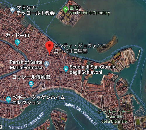 | <ヴェネツィア総合メニュー> <教会4> サン・ジェレミア教会とルチア教会 サンティ・ジョヴァンニ・エ・パオロ聖堂 サン・シメオーネ・ピッコロ教会 サン・ジョバンニ・グリソストモ教会 聖ジョルジオ・デイ・グレーチ教会 本稿の解説文は、現地調査に基づく開設に加え、Veneziaイタリア語版を中心にVenice英語版からの翻訳及び日本語版を使用しています。また写真は現地撮影分以外にWikimedlia Commons、さらに地図はグーグルマップ、グーグルストリートビューを使用しています。その他の引用に際しては、その都度引用名をつけています。 ◆サンティ・ジョヴァンニ・エ・パオロ聖堂 以下は、サンティ・ジョヴァンニ・エ・パオロ聖堂の位置を表しています。 ![]() 出典:グーグルマップ ![]() 出典:グーグルマップ 以下は、サンティ・ジョヴァンニ・エ・パオロ聖堂の外観を表しています。 ![]() サンティ・ジョヴァンニ・エ・パオロ聖堂 Source:Wikimedia Commons CC BY-SA 4.0, Link ![]() サンティ・ジョヴァンニ・エ・パオロ聖堂の正面 Source:Wikimedia Commons CC BY-SA 4.0, Link サンティ・ジョヴァンニ・エ・パオロ聖堂(イタリア語: Santi Giovanni e Paolo, Venice)は、イタリアのヴェネツィアにあるドミニコ会の聖堂です。 ヴェネツィア共和国歴代元首(ドージェ)の葬式などを執り行うなど(25人の元首がこの聖堂内に埋葬されている)、ヴェネツィア内でも大きな聖堂の1つです ゴシック建築を元にした煉瓦造りの巨大な聖堂であり、ヴェネツィアのドミニク会の主教会としての役割を果たしてきました。古代ローマの初期キリスト教の聖人ジョンとポール(聖使徒ヨハネおよび聖パウロとは別人)に捧げられた聖堂です。 1246年に建設が始まったが、きっかけは時のヴェネツィア共和国元首ヤコポ・ティエポロが「沼地の上を白いハトの大群が飛ぶ夢」を見た事によります。ティエポロはその沼地をドミニク会へと寄贈し聖堂が建設されました。新たな聖堂の建設のため1333年に古い聖堂は取り壊され、現在の聖堂は1430年に完成しました。 聖堂内は、葬式用や埋葬用のモニュメントや絵画が多くあり、聖遺物としてシエナのカタリナの足などが奉納されています。 聖堂の横には、ヴェネツィア共和国の傭兵隊長だったバルトロメーオ・コッレオーニの銅像が立っています。(アンドレア・デル・ヴェロッキオ作) 鐘楼にはニ長調の音階を奏でる3つの鐘があります。 ![]() 聖堂内部 Source:Wikimedia Commons CC BY-SA 3.0, Link ![]() ロザリーの礼拝堂 Source:Wikimedia Commons CC BY-SA 4.0, Link 聖堂内の絵画・彫刻に携わった主な画家・彫刻家など ・ジョヴァンニ・ベリーニ ・ピエトロ・ロンバルド ・ロレンツォ・ロット ・ジョヴァンニ・バッティスタ・ピアッツェッタ ・アルヴィーゼ・ヴィヴァリーニ 主な埋葬者 ・ヴェネツィア共和国元首: ・ヤコポ・ティエポロ ・ロレンツォ・ティエポロ ・ジョヴァンニ・モチェニーゴ ・レオナルド・ロレダン ・セバスティアーノ・ヴェニエル その他の著名人 ・ジェンティーレ・ベリーニ(ヴェネツィア派の画家) サン・シメオーネ・ピッコロ教会へつづく |