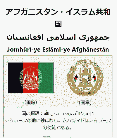 | 総合メニュー(中央・西アジア) アフガニスタン アフガニスタン1 アフガニスタン2 アフガニスタン3 アフガニスタン4 アフガニスタン5 アフガニスタン6 次はアフガニスタン1です。 ◆アフガニスタン ![]() ![]() アフガニスタン・イスラム共和国、通称アフガニスタンは、南アジアに位置する共和制国家です。首都はカーブルです。 内陸国であり、南および東にパキスタン、西にイラン、北にタジキスタン、トルクメニスタン、ウズベキスタンが位置し、国の東端(ワハーン回廊)は中華人民共和国の新疆ウイグル自治区に接しています。 パシュトゥーン人(狭義のアフガーン人)のほか、タジク人、ハザーラ人、ウズベク人、トルクメン人などの数多くの民族が住む多民族国家でもあります。 国名の変遷 1834年 - 1926年 アフガニスタン首長国 1926年 - 1973年 アフガニスタン王国 1973年 - 1978年 アフガニスタン共和国 1978年 - 1987年 アフガニスタン民主共和国 1987年 - 1992年 アフガニスタン共和国 1992年 - 1996年 アフガニスタン・イスラム国 ターリバーン政権期 1996年 - 2001年 アフガニスタン・イスラム国(北部同盟政権。国際連合代表権保持政府) 1996年 - 2001年 アフガニスタン・イスラム首長国(ターリバーン政権) ボン合意以降 2001年 - 2002年 アフガニスタン(公式国名なし) 2002年 - 2004年 アフガニスタン・イスラム移行国 2004年 - アフガニスタン・イスラム共和国 国旗 現在の国旗は2002年1月に制定されたものです。中央の紋章に書かれている文字はコーランの冒頭の聖句(シャハーダ)である「アッラーフのほかに神はなし、ムハンマドはアッラーフの使徒なり」と書かれています。 歴史 先史時代 紀元前10万年、旧石器の文化がありました。紀元前7000年、新石器の文化がありました。 紀元前3000年から紀元前2000年にかけて四大文明が起こり、都市文化が生まれつつありました。その背景には農耕文化の発展がありました。アフガニスタンは、先史時代からイラン高原やメソポタミアの諸文化と早くからつながりがあり、また、インダス文明とも交流がありました。 紀元前2000年から紀元前1800年は青銅器時代で、ムンディガク遺跡、デー・モラシ・グンダイ遺跡が見つかっています。また、バクトリア地方から出土した数体の石製女性像が見つかっています。 紀元前12世紀、リグ・ヴェーダによれば、十王戦争が勃発し、バルフからパンジャブへ侵攻しました。 ペルシア・ギリシア・インド文化の時代 ペルシアとアレクサンドロス大王の支配 ![]() 紀元前5世紀ごろ、アラコシアには古代民族Pactyansが住んでた Source:Wikimedia Commons 紀元前6世紀、イラン人が建てたアケメネス朝ペルシャ帝国に編入され、アレイヴァ(ヘラート)、アラコシア(カンダハール、ラシュカルガー、クエッタ)、バクトリア(バルフ)、サッタギディア(ガズニー)、ガンダーラ(カーブル、ジャラーラーバード、ペシャーワル)の地方名で呼ばれていました。 カンダハルの旧市シャル・イ・コナの発掘によって、紀元前6世紀にはこの町がすでにアフガニスタン南方の首邑になっていたことが明らかになっています。 紀元前5世紀ごろ、アラコシアには古代民族Pactyansが住んでいたことがサンスクリットや古代ギリシャ語文献から知られています。 紀元前4世紀、アレクサンドロス3世(大王)はこの地を征服し、アレクサンドリアオクシアナ(Alexandria on the Oxus)と呼ばれる都市を建設しました。 南方のマウリア朝と北方のグレコ・バクトリア王国 ![]() カンダハールで発見されたギリシャ語とアラム語で書かれたアショーカ王碑文(紀元前3世紀) Source: Wikimedia Commons 紀元前3世紀中ごろ、アフガニスタン北部からタジキスタン南部にかけてはギリシャ人の建てたグレコ・バクトリア王国が支配しました。 紀元前130年ごろ、メナンドロス1世が死んでインド・グリーク朝が分裂すると、サカ族がガンダーラ地方でインド・スキタイ王国を興しました。 紀元前2世紀後半、匈奴に追われた遊牧民の月氏が侵入し、グレコ・バクトリア王国は滅びました。 1世紀以降、先の大月氏の立てたクシャーナ朝がこの地に栄えます。このころギリシア文化は影響力を失い、代わって南方のマウリヤ朝から流入したインド文化や仏教の影響が強く見られるようになります。4世紀ごろまでバクト商人がシルクロード交易を掌握します。 3世紀末、クシャーナ朝に代わりサーサーン朝の支配がこの地に及びます。 5世紀前半、エフタルが起りアフガニスタン・パキスタンの地を支配します。 6世紀後半、アルタイ方面から南下してきた突厥による支配を受けます。 イスラーム化の進展 ![]() ゴール朝の時代に建てられたヘラートの金曜モスク Source: Wikimedia Commons 8世紀初頭、イスラム帝国・アッバース朝のイスラム教徒軍がハザール・ソグディアナに侵攻し(アラブ・ハザール戦争、トランスオクシアナ征服)、その支配下へ入ります。751年のタラス河畔の戦いによりイスラム商人がシルクロード交易を掌握する。ゾロアスター教や仏教、ヒンズー教