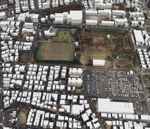 また施設の南側、すなわち井草駅側、住宅地側に向け順次標高が下がっている。まず、排気塔がある地点と施設南側のグランドとは約5mの高低差がある。さらにグランドから井草駅近くの住宅地との間でもおそらくかなりの高低差があると推定できる。 これらの要因は今後、3次元流体モデルを用い数値計算を行う上で調査を行う上での重要なポイントである。