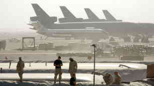 トランプ大統領は、2025年5月15日木曜日、カタールのドーハにあるアル・ウデイド空軍基地で演説した後、ジェスチャーをしている。 - スプートニク・インターナショナル、2025年9月12日 c AP Photo / アレックス・ブラ