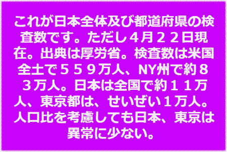 日本全体10数万検査数、東京都約1万検査数r